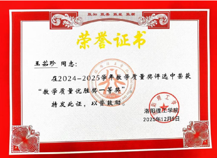 教学质量奖是学校表彰在本科教学工作中表现突出的教师的重要奖项,重点考察教师在课堂教学效果、教学内容设计、教学方法创新、学生评价及教学规范等方面的综合表现。该奖项评选过程严格、标准规范,具有较高的权威性和示范性。