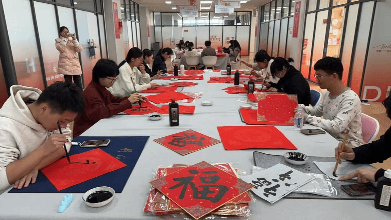 活动现场,师生们以饱满的热情投入到福字创作中。笔走龙蛇间,一幅幅笔法精湛、寓意吉祥的福字跃然纸上,或大气磅礴,或清秀雅致,每一笔都饱含着对母校的深深祝福和对新春的美好期许。前来观摩的师生们驻足欣赏,不时对创作者的精湛技艺啧啧称赞。在场的同学们表示:“能领到老师和同学亲笔写的福字,特别有年味儿,感觉提前感受到了新春到来的脚步,也感受到中华优秀传统文化的魅力 。”
