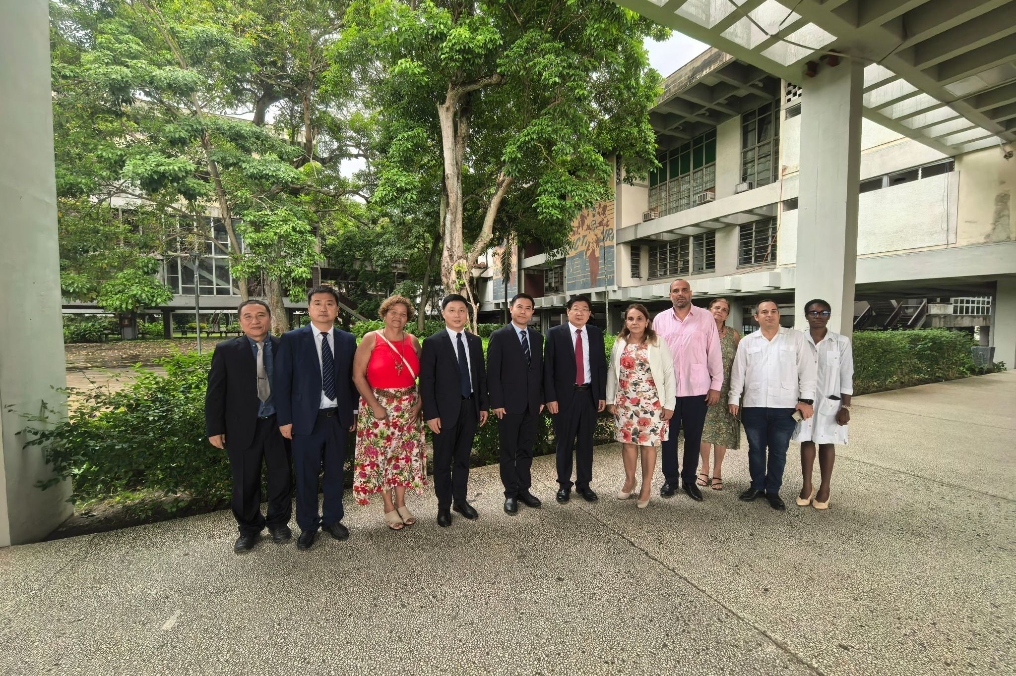 在哈瓦那大学期间,代表团与高等教育研究中心主任Amaurys等进行座谈交流。哈瓦那大学作为古巴规模最大、历史最悠久的大学,是拉美高等教育的重要标杆,该校在生物医药研究方面具有较强优势。双方就加强人才引进、客座教授聘请等事宜进行深入交流,旨在推动生物发酵、生物分析检验及诊断等领域合作,助力学校国际化师资队伍建设。