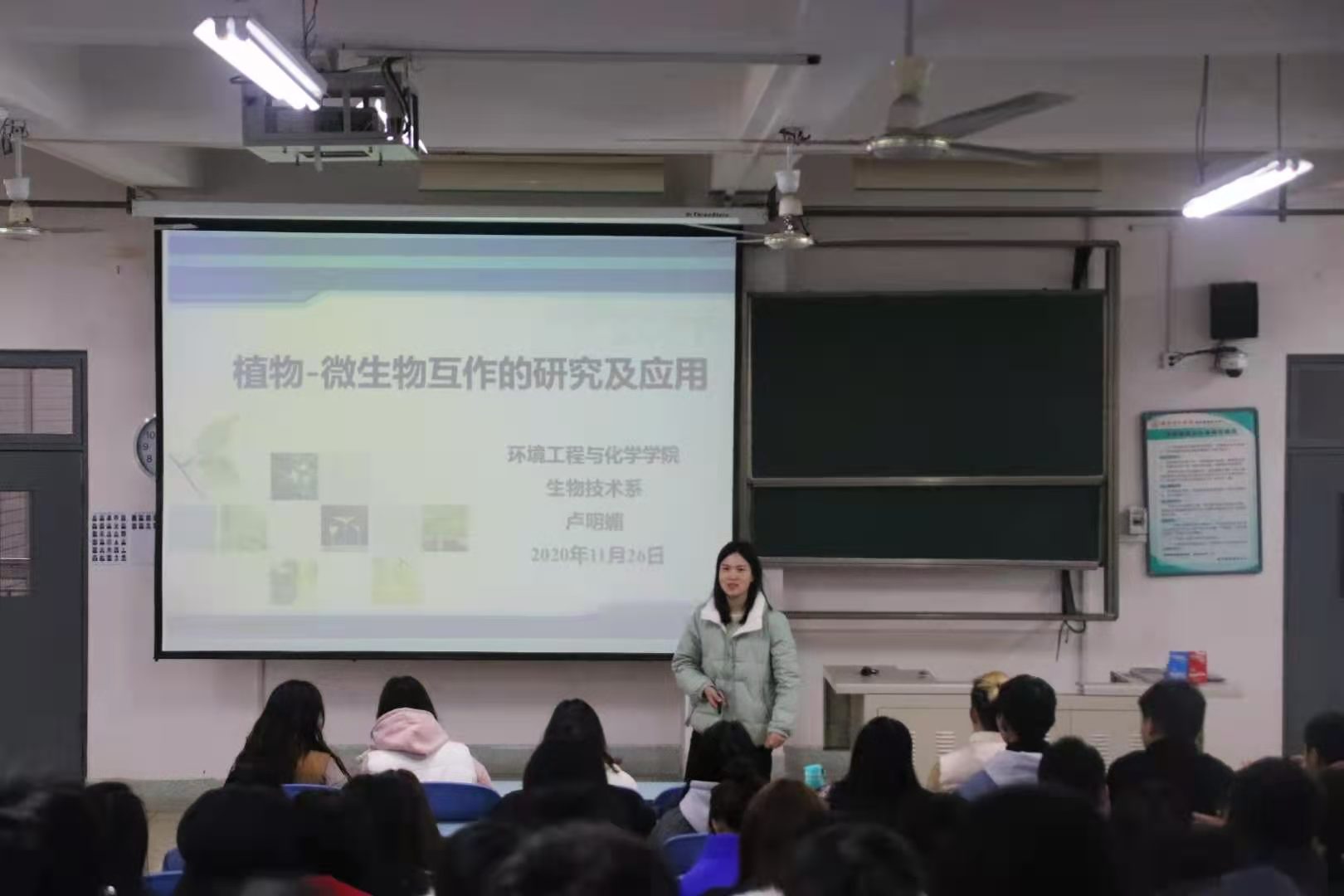 11月26日,“青椒讲坛”系列学术讲座第五期顺利举行。我院生物技术系青年教师卢明媚博士向生物技术专业全体学生作了题为“植物-微生物互作的研究及应用”的讲座。