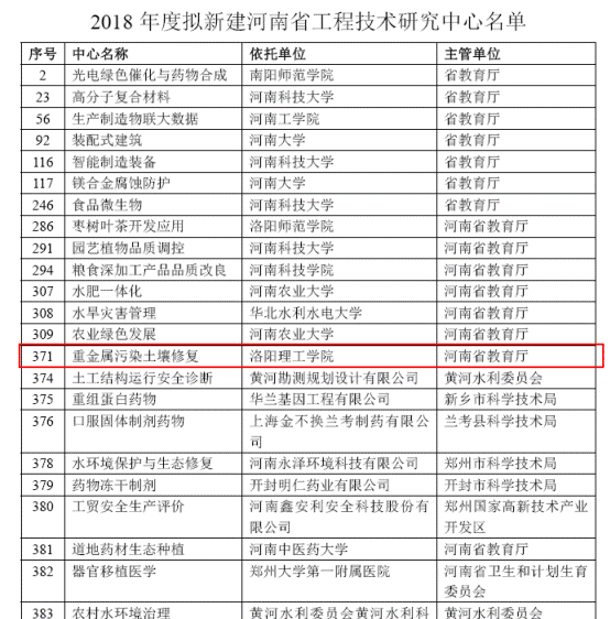 日前,从河南省发改委和河南省科技厅传来喜讯,我院申报的“河南省重金属污染土壤修复工程技术研究中心”成功获批省级科研平台,成为学校2018年获批的3个省部级科研平台之一。这是继2015年获批“有机钼(钨)河南省工程实验室”之后,我院又新添的一个省级科研平台。该科研平台的建设,将大力推动我院学科交叉融合,促进学科发展,进一步提高学院的科学研究水平,为学术队伍建设和创新人才培养创造有利条件。学院将进一步整合资源,加强制度建设和规范管理,为平台建设创造良好科研条件和学术环境,力争将该中心建设成省内高水平科研平台。(文/田文杰)