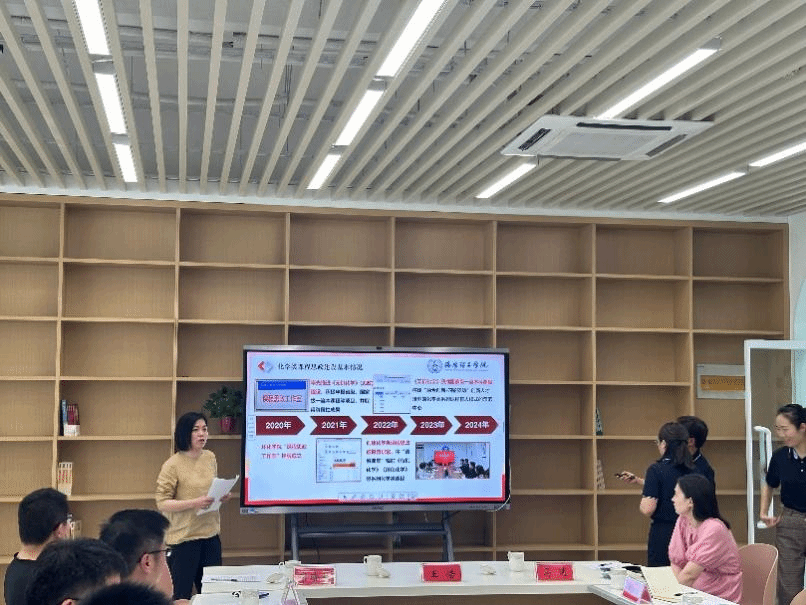 活动以双方研讨会的形式拉开序幕。洛一高党委书记、校长宋富有出席活动并从洛一高的校史、发展史、招生、高考、学生在校教育等方面,向我院一行老师进行了全面介绍。王学峰书记也就环化学院的整体发展情况以及化学类思政课程开展情况、环化学院“三全育人”创新路径实践等向洛一高参会老师作了充分介绍。接着,洛一高党委委员、师生服务中心程浩主任,我院教工第五党支部书记王万慧分别就双方的思政教育开展情况作了详细汇报。了解到双方的思政教育开展模式、方法、成果之后,双方就如何深入开展合作进行了热烈的研讨,并提出了多条可落地的合作方案。