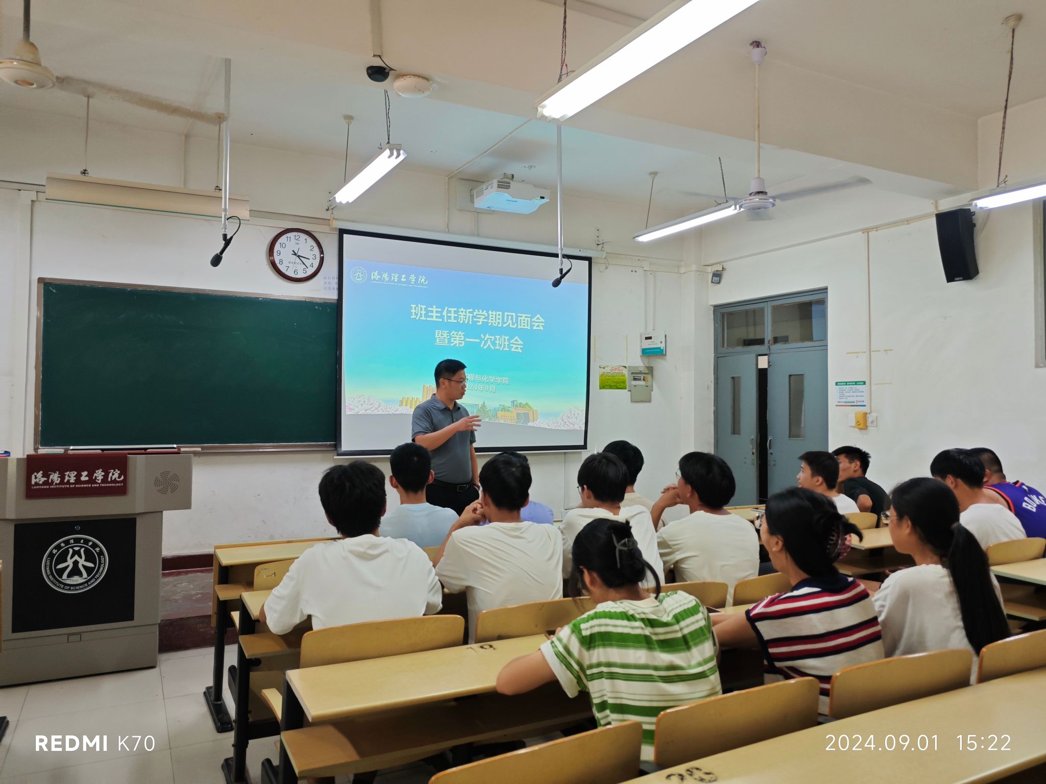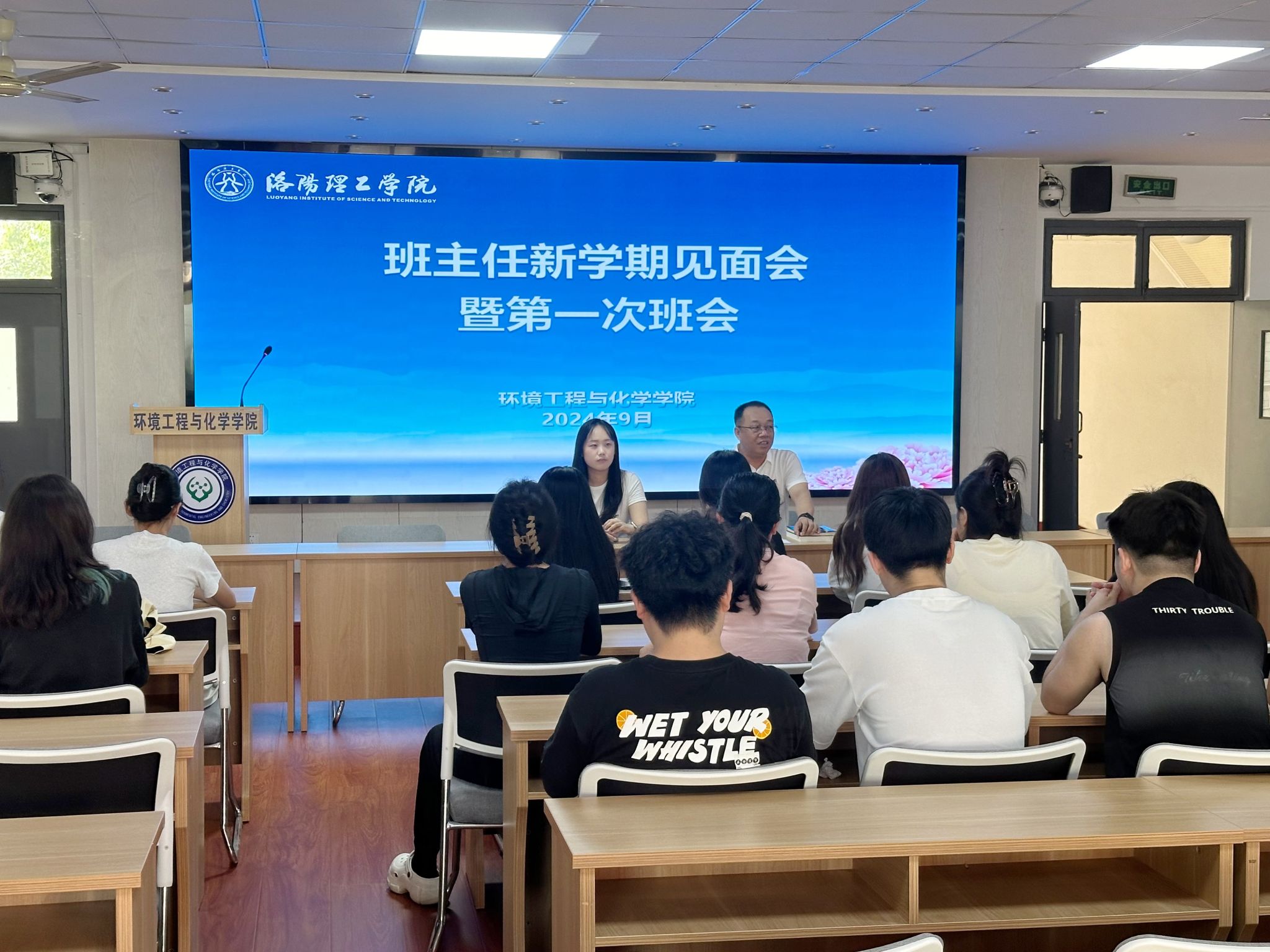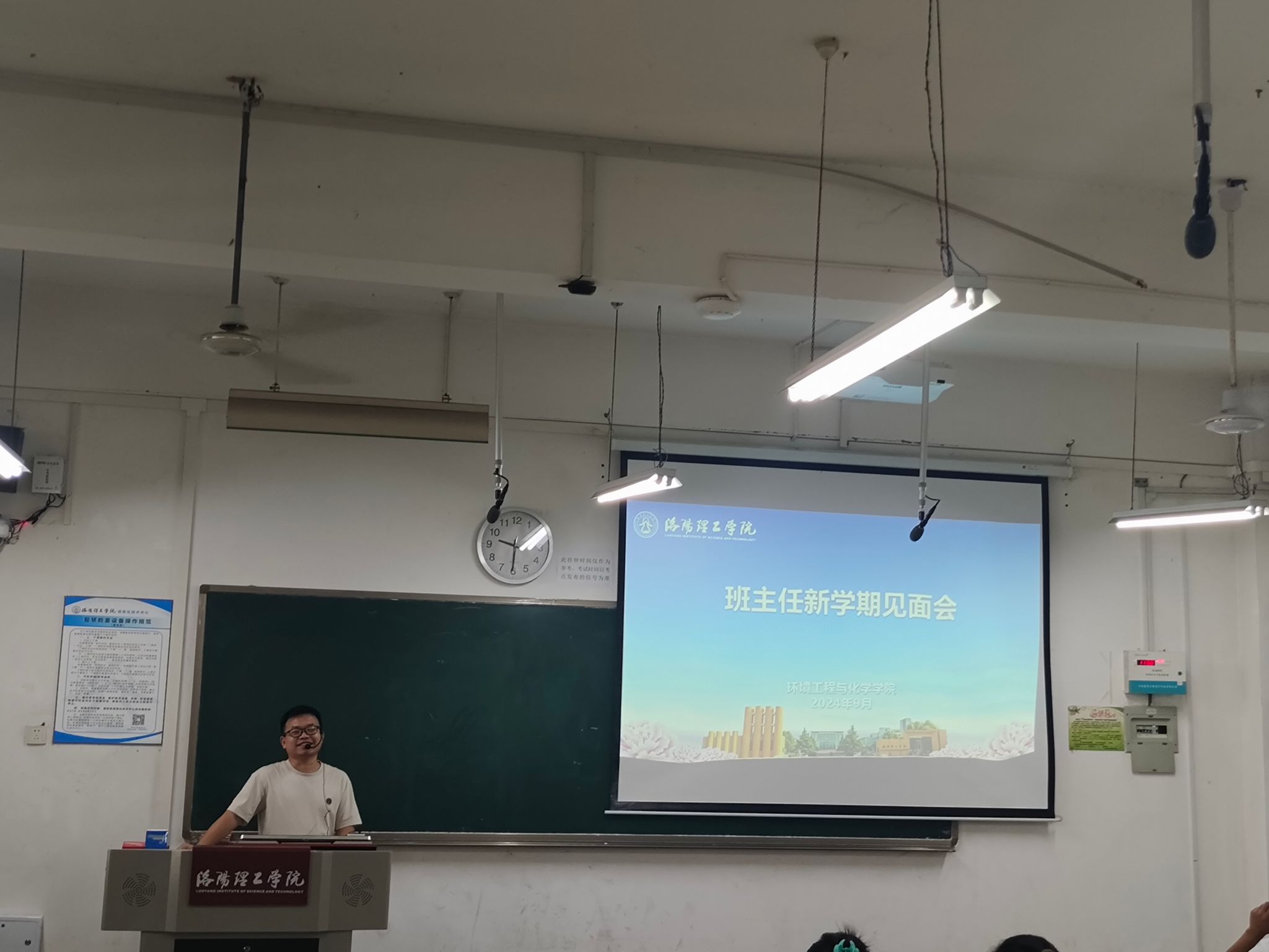 新学期,新气象,为落实班主任工作会议精神,全面提高学院班主任管理水平,推动班主任队伍建设,切实提高班级管理效率,我院班主任工作全面启动。经过遴选,由学校领导、机关干部、学院领导、专任教师组成的33名班主任担任环化学院56个学生班级的班主任工作。9月1日下午,班主任新学期与学生见面会举行,就思想引领、学生安全、专业教育、学业指导、创业创新、升学就业开展全方位的指导交流。