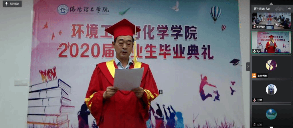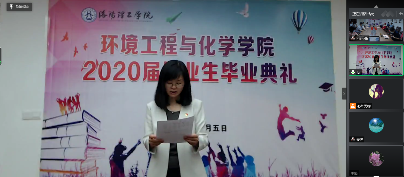 党委书记王莉介绍了环化学院2020届毕业生的毕业情况和本科毕业生学位的授予情况,宣读了环化学院关于表彰获得省级、校级优秀毕业生的决定。