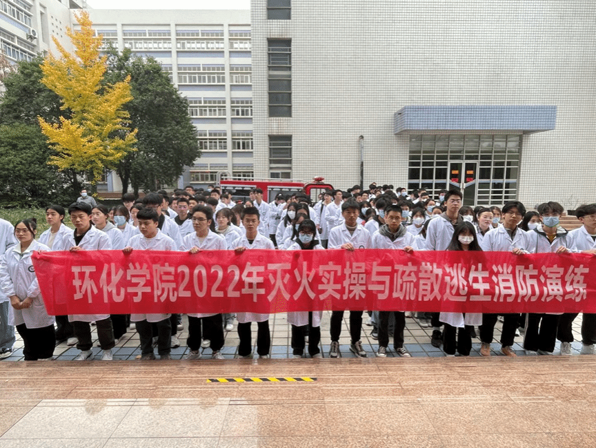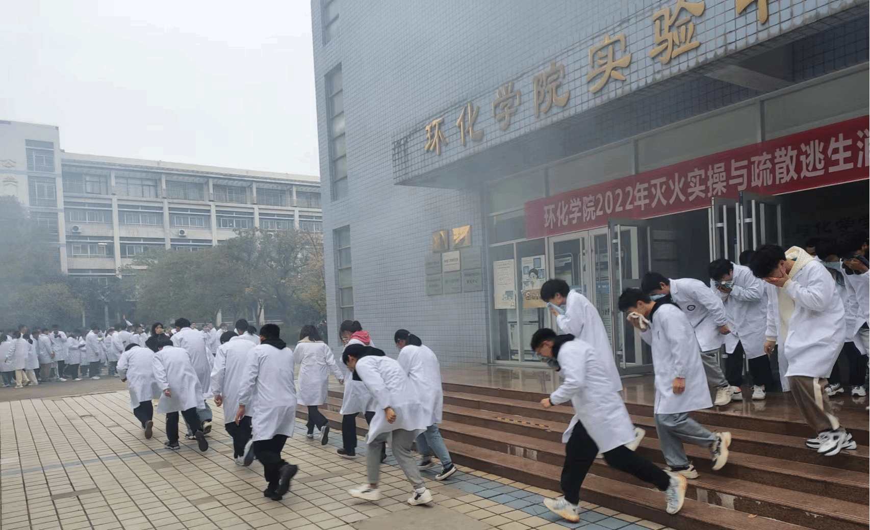为响应学校2022年校园“119”消防宣传月活动号召,普及校园消防安全知识,不断提高校园师生消防安全意识,筑牢校园消防安全堤坝,提升学生自防自救能力,11月16日下午,环境工程与化学学院联合学校保卫处和实验室建设与设备管理办公室在环化学院实验楼开展了学院2022年灭火实操与疏散逃生消防演练活动。校保卫处、实验室建设与设备管理办公室和学院有关负责人以及环化学院2022级181名学生参加本次消防演练。
