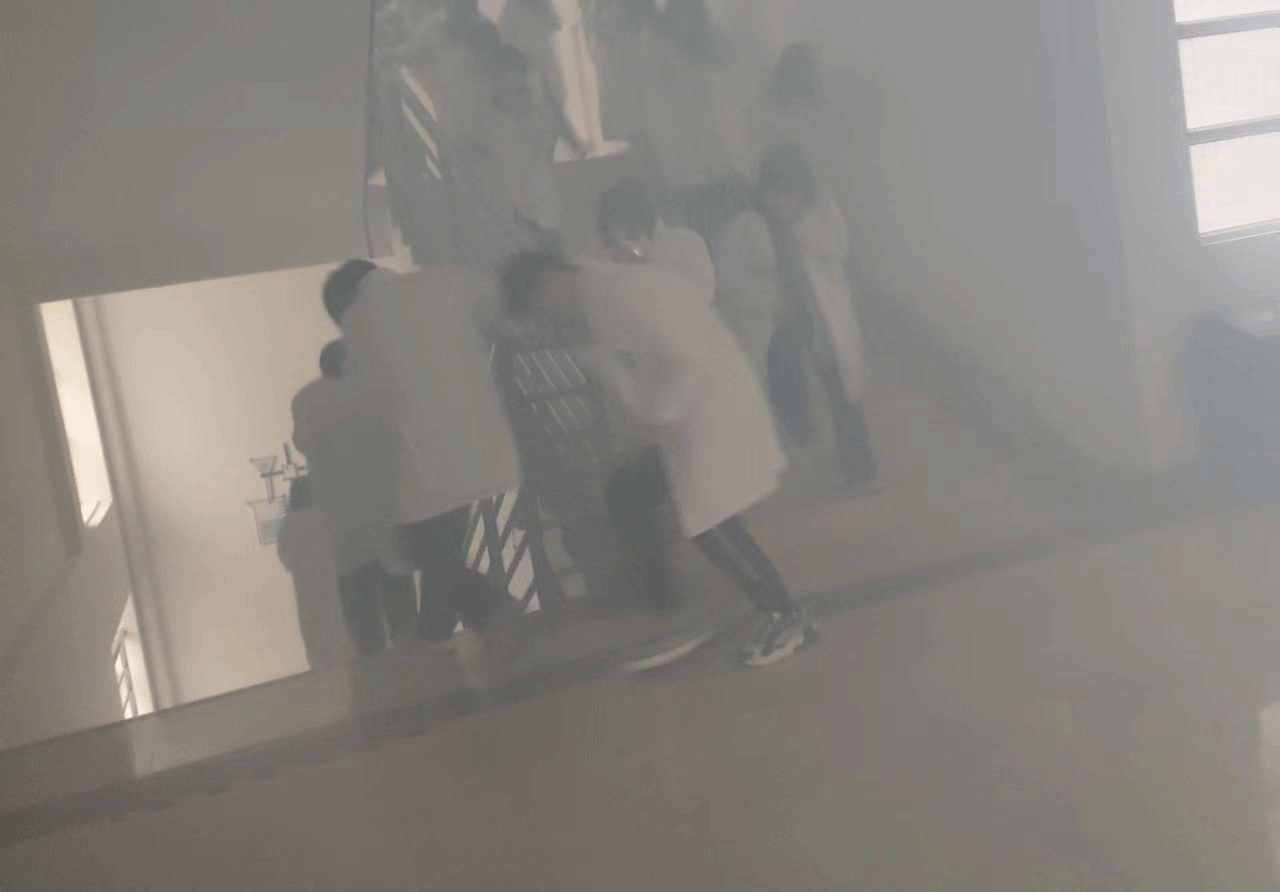 全体师生疏散撤离结束后,各楼层负责人清点人数并上报人员疏散情况,随后开展灭火实操演练。