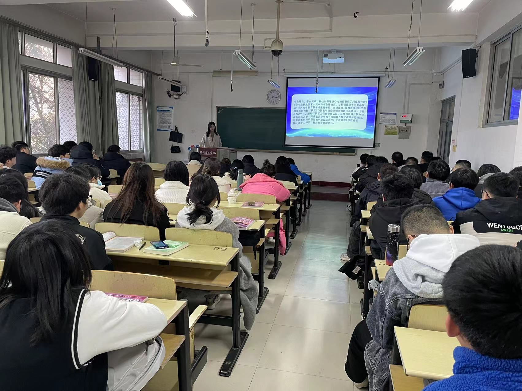 课堂上,马克思主义学院范会勋、邓辰辉老师,校医院黄阳老师和材料工程与科学学院辅导员员星分别进行了理论讲授和经验分享。