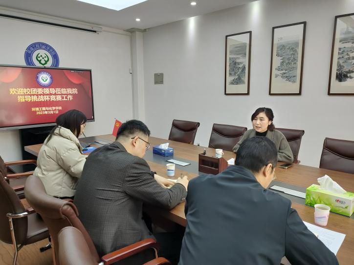 3月1日上午,我院在环化楼DN303会议室召开“挑战杯”竞赛项目备赛工作会。校团委副书记樊伊人、学院党委书记王学峰、副书记牛秋菊、副院长张拦参加会议。校团委副书记樊伊人通报了我院入围“挑战杯”的校赛项目,肯定了学院当前所取得的成绩,并就备赛工作与学院进行交流和针对性指导,希望学院参赛团队能够总结经验,再接再厉,全力冲刺省奖。