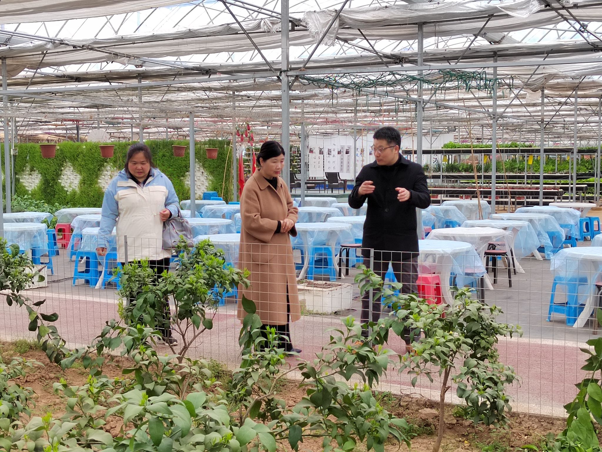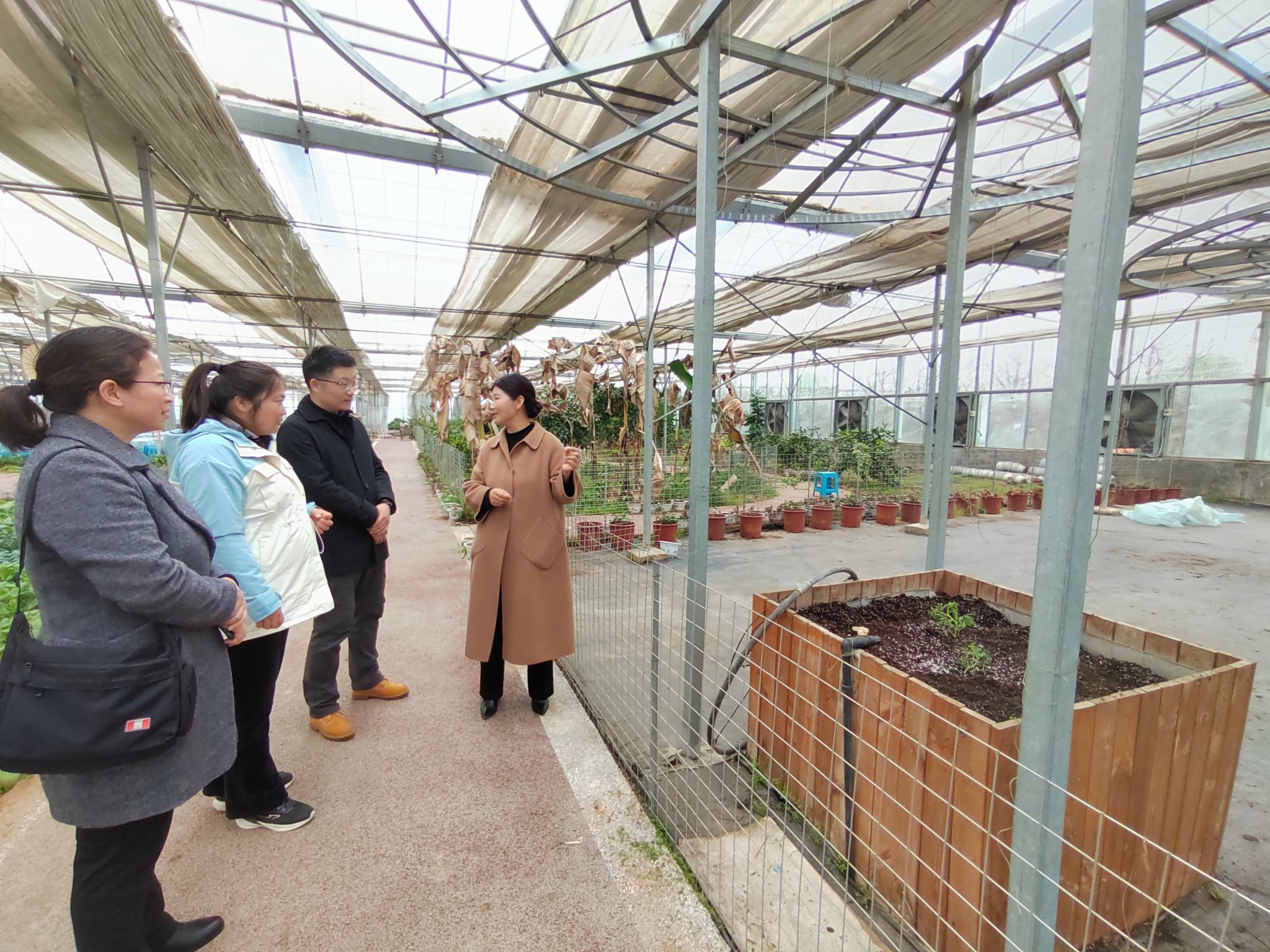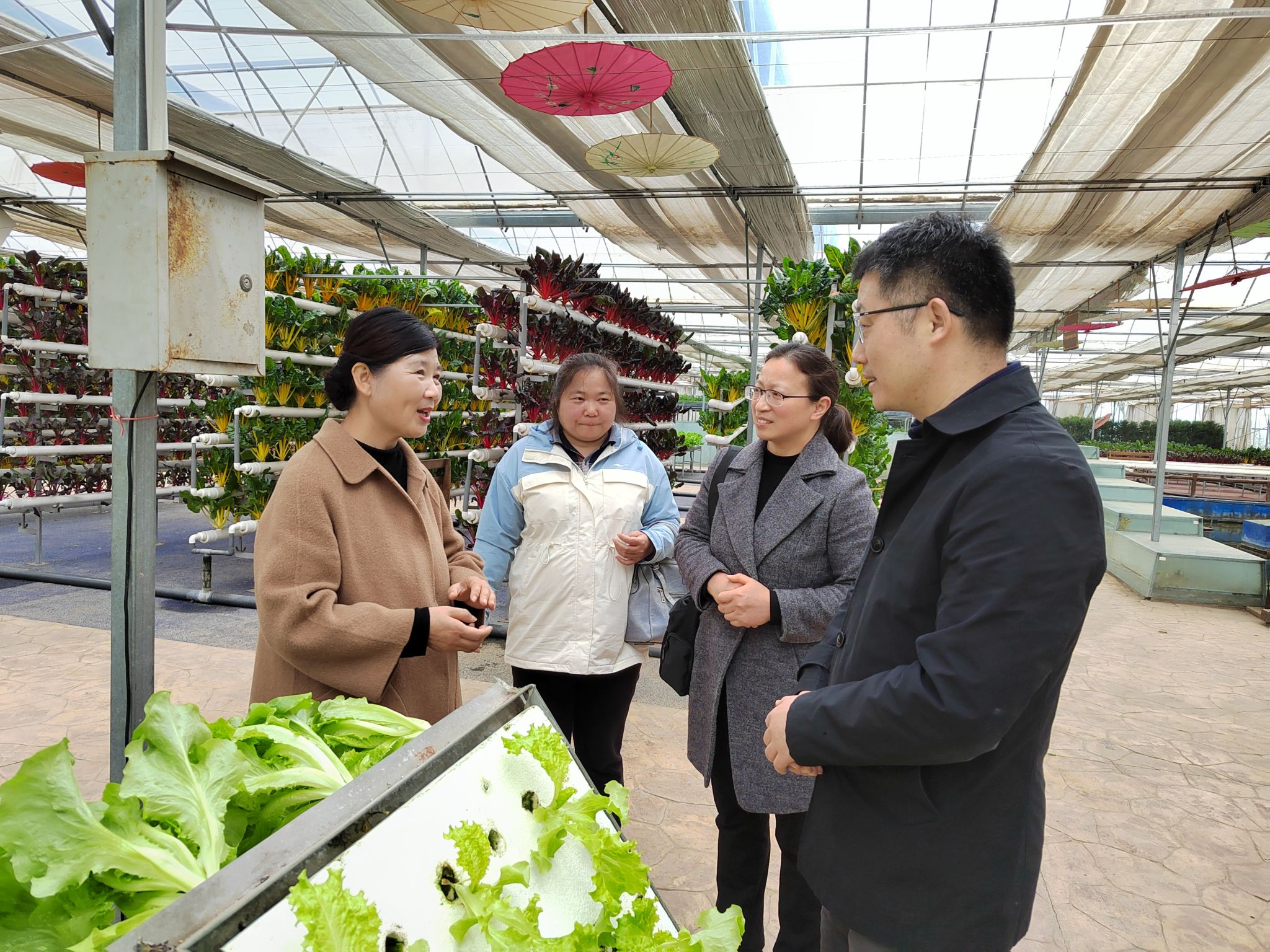 全国人大代表、孟津区京孟种植专业合作社理事长吕妙霞带领考察人员一起参观了草莓种植基地,介绍了基地的管理经验和地方政府农业政策支持情况,带领考察人员参观了园区内蔬菜水果的立体栽培、水培雾培、南方热带植物北方驯化等现代农业新技术的在基地中的应用,以及作为研学体验基地所进行的青少年研学教育活动开展情况。