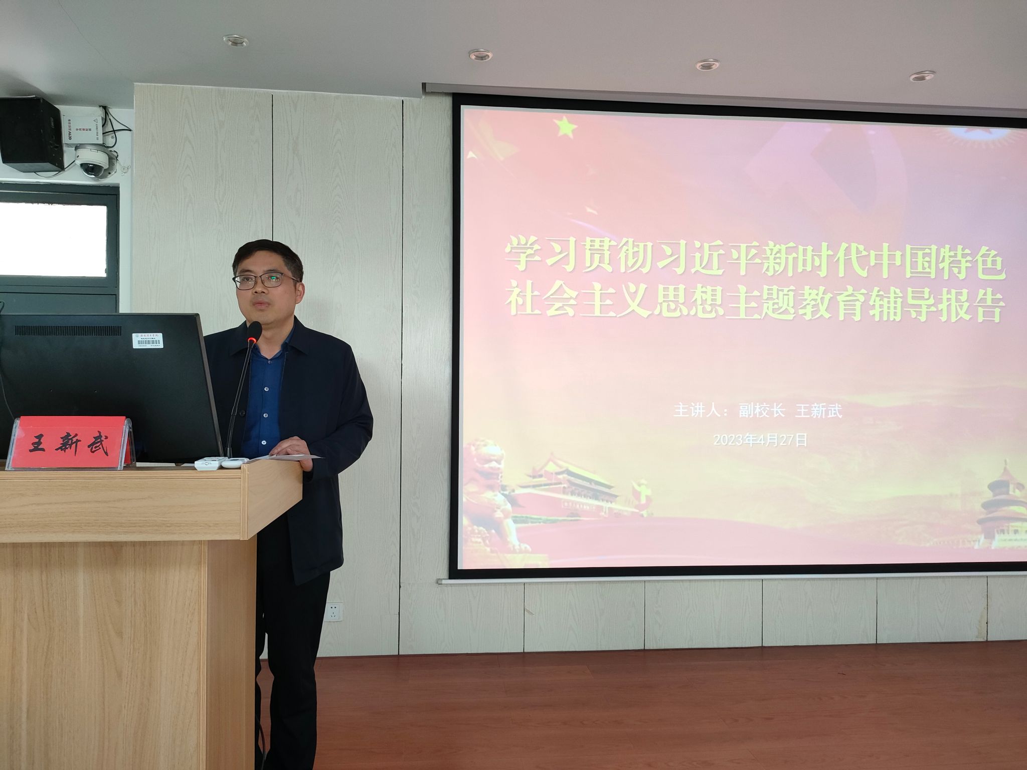 在全校全面开启主题教育之际,4月27日下午,王新武副校长来学院,在职工大会上作了“学习贯彻习近平新时代中国特色社会主义思想主题教育”的辅导报告。学院班子成员、全体教工和学生代表参加了会议。