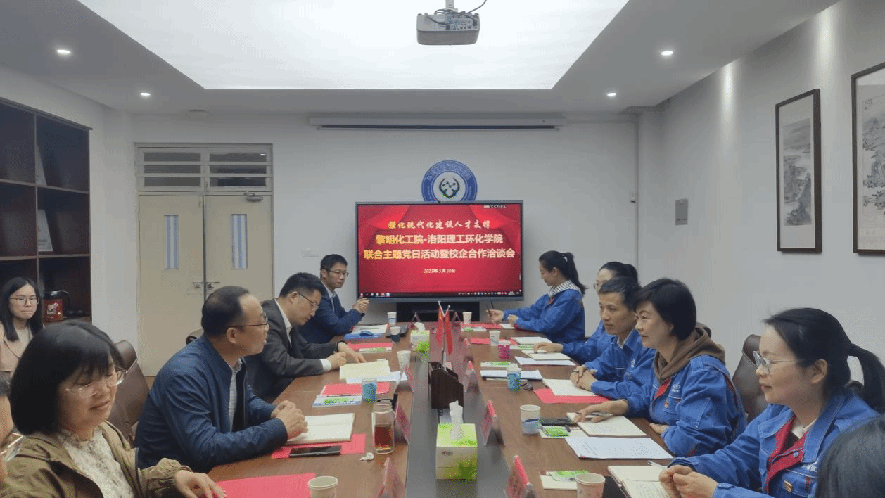 党的二十大报告指出:“教育、科技、人才是全面建设社会主义现代化国家的基础性、战略性支撑。”为全面贯彻落实党的二十大精神、把习近平总书记关于科技创新的重要指示批示精神落实为生动实践之际,5月10日,我院与黎明化工研究设计院有限责任公司在环化楼DN303会议室共同举办“‘强化现代化建设人才支撑’黎明院-洛阳理工环化学院联合主题党日活动暨校企合作洽谈会”。黎明化工研究设计院有限责任公司副总经理张志勇、人事部/组织部等有关人员8人、我校副校长王新武携环境工程与化学学院、马克思主义学院、组织部等有关人员14人参加了会议。会议由环化学院党委书记王学峰主持。