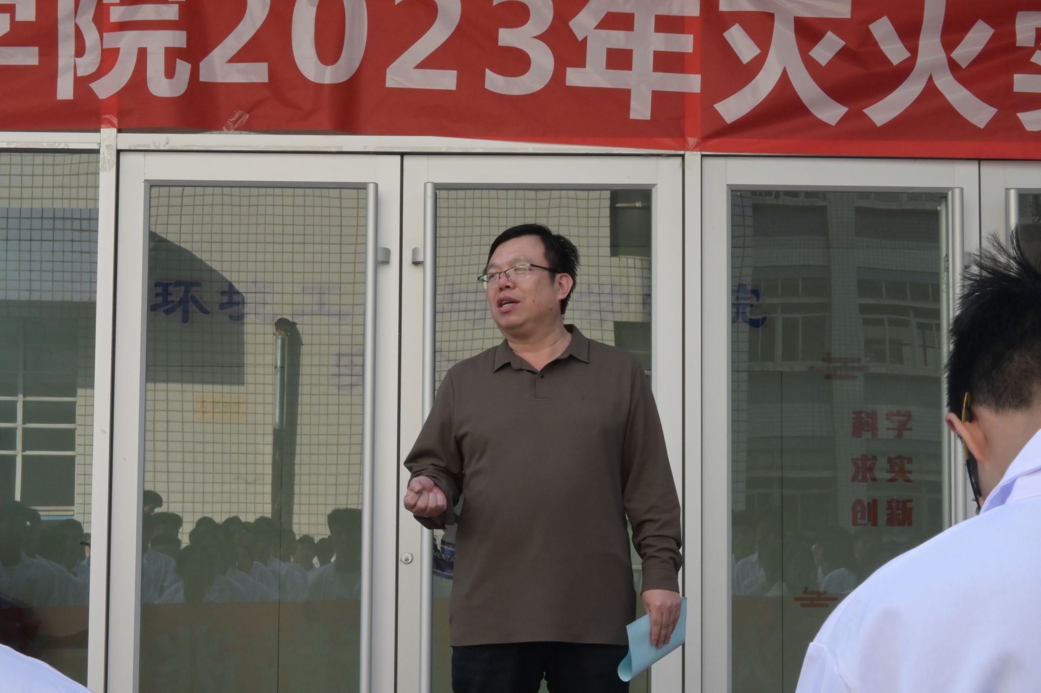 演练结束后,实验室建设与设备管理办公室王洪刚主任、尹国杰副院长依次对演练活动进行总结。此次演练,不仅增强了同学们的消防安全意识,提升了同学们的消防设备使用技能,使同学们能够沉着冷静有效应对突发事件,还提升了同学们的相互协作能力,使每位同学都能做消防安全的践行者。(图文/赵国英,审核/王学峰)