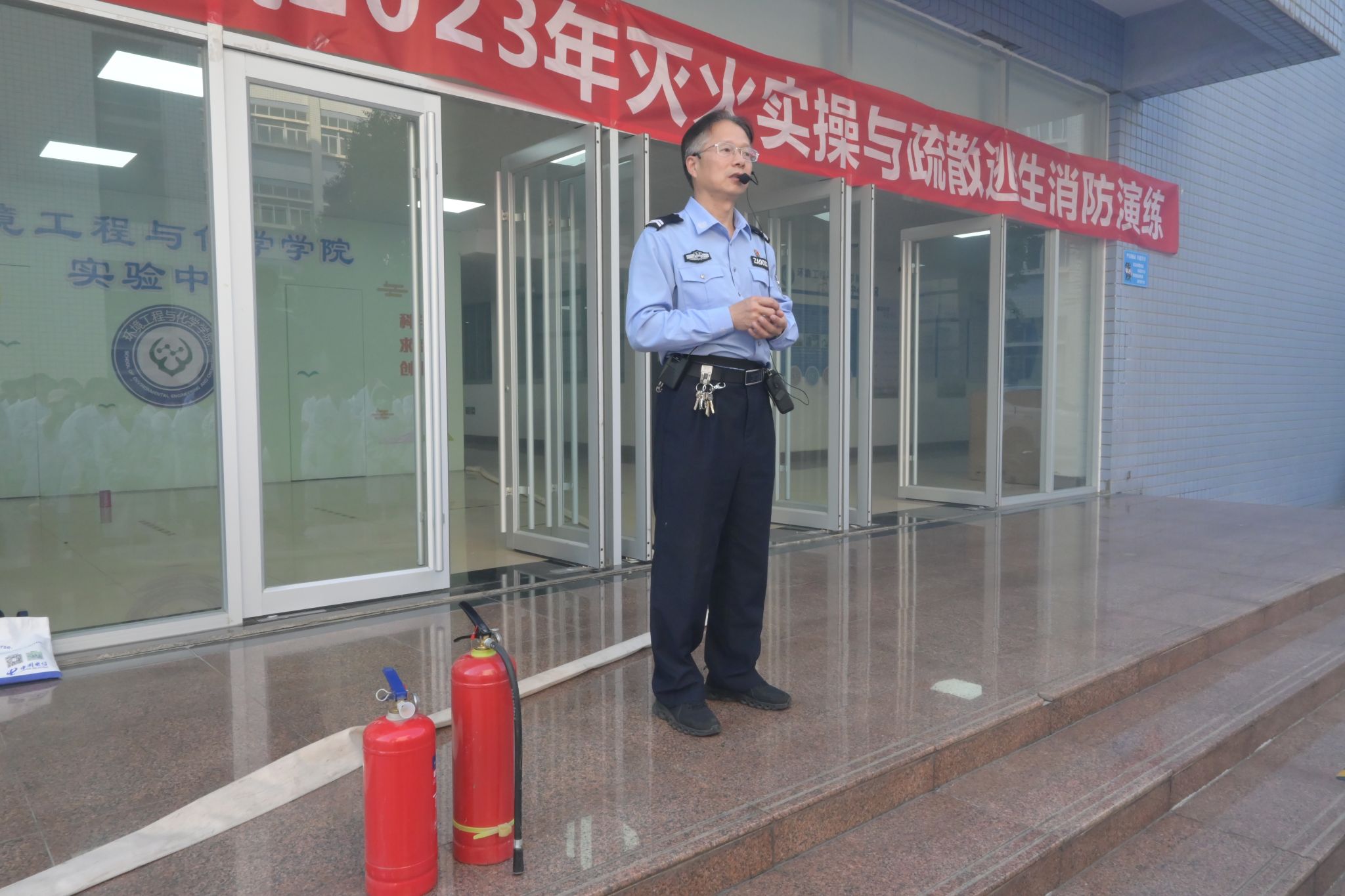 为普及校园消防安全知识,不断提高校园师生消防安全意识,筑牢校园消防安全堤坝,提升学生自防自救和疏散逃生能力。10月26日下午,环境工程与化学学院联合学校保卫处和实验室建设与设备管理办公室等相关部门在王城校区环化学院实验中心开展“2023年度灭火实操与疏散逃生消防演练”。实验室建设与设备管理办公室王洪刚处长、谢杰副处长、陈林峰科长,保卫处李晓杰科长,学院党委书记王学峰、副书记牛秋菊、副院长尹国杰,保卫处消防科、环化学院实验中心全体教师、全体辅导员队伍及学院203名学生参加本次消防演练。