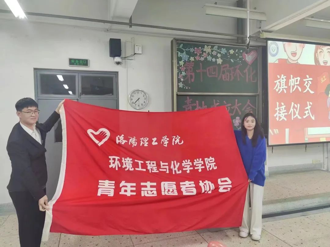 青协换届旗帜交接仪式正式开始。仪式中交接的不仅仅是一面志愿者旗,更是一种传递爱,收获爱的精神力量。