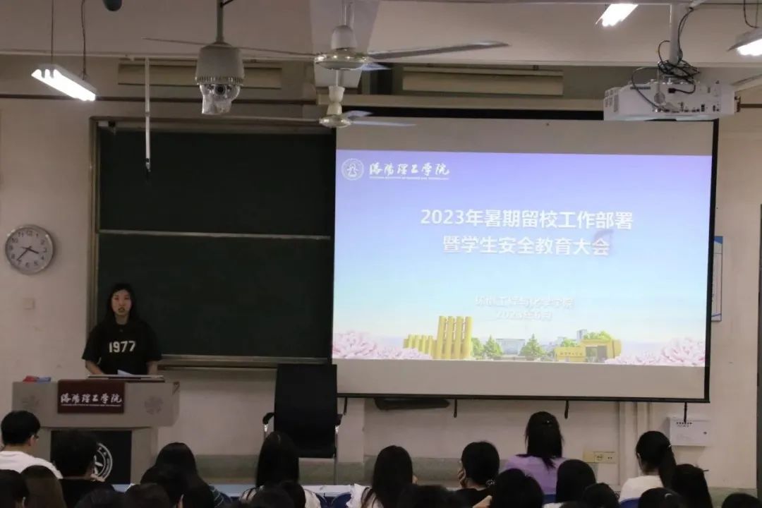 刘芳老师向全体参会人员宣读了《环境工程与化学学院2023年暑期学生留校工作实施方案》,并对同学们开展了一次安全教育,尤其对防溺水、防食物中毒、防人身伤害、防交通事故等方面进行了着重强调,同时,她向同学们讲解了学院的纪律要求,要求同学们严守纪律,提高自身安全意识。