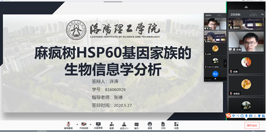 本次毕业答辩充分利用信息化手段,首次采用 “云”答辩形式,以腾讯会议为主要答辩平台,各答辩小组提前发布答辩安排和学生进行线上答辩的注意事项,以确保线上答辩的顺利进行。答辩过程中,学生态度认真,秩序井然,逐一向答辩老师们阐述毕业论文(设计)内容,提问环节各组答辩老师以认真、严谨的态度,指出论文的亮点,同时也对论文的不足提出修改意见与建议,实现了线上答辩与线下答辩的实质等效。同时学院毕业设计(论文)要求真题实作,一人一题,尤其注重校企合作,邀请来自洛阳市环境监测站、黎明化工研究院和洛阳市新区污水处理厂等4名企业行业专家参与答辩过程,从工程实际对学生的毕业设计相关项目进行点评,强化了学生的工程意识和项目设计的工程规范与标准要求,有效促进了应用型人才的培养。(文/杨瑞先,图/刘萍、曲洋,编辑/李月,审核/王莉、张少文)