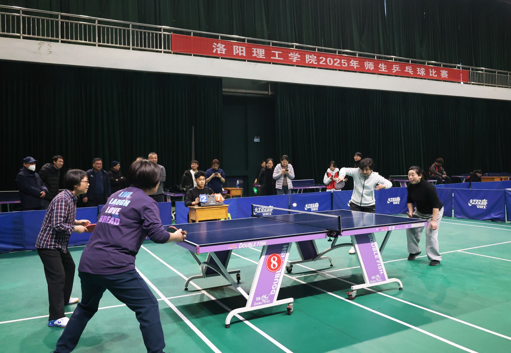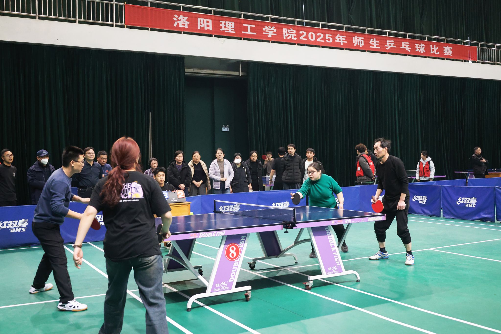 本次师生乒乓球比赛由校工会牵头主办,体育教学部、教职工乒乓球协会协同承办,来自全校 28 个基层工会的 24 支代表队、共计300余名师生报名参赛。比赛期间,后勤保障处代表队遵循 “友谊第一、比赛第二” 的体育精神,在乒乓球台前展开多轮激烈角逐:精准的弧圈球、迅捷的反手快拨、巧妙的搓球防守……选手们凭借精湛球技与顽强斗志,为现场观众呈现了一场场精彩绝伦的竞技对决,赛场内外始终洋溢着积极向上的拼搏氛围。面对多支实力强劲的队伍,后勤保障处选手始终保持 “不骄不躁” 的沉稳心态,顶住晋级压力,在落后局面中沉着调整战术,在关键对局中默契配合、敢打敢拼。从小组赛的稳扎稳打,到淘汰赛的险胜突围,最终凭借过硬的技术实力与良好的心理素质,成功斩获比赛第三名,为后勤保障处赢得荣誉,也让全校师生看到了后勤工作者在服务保障之外的别样风采。