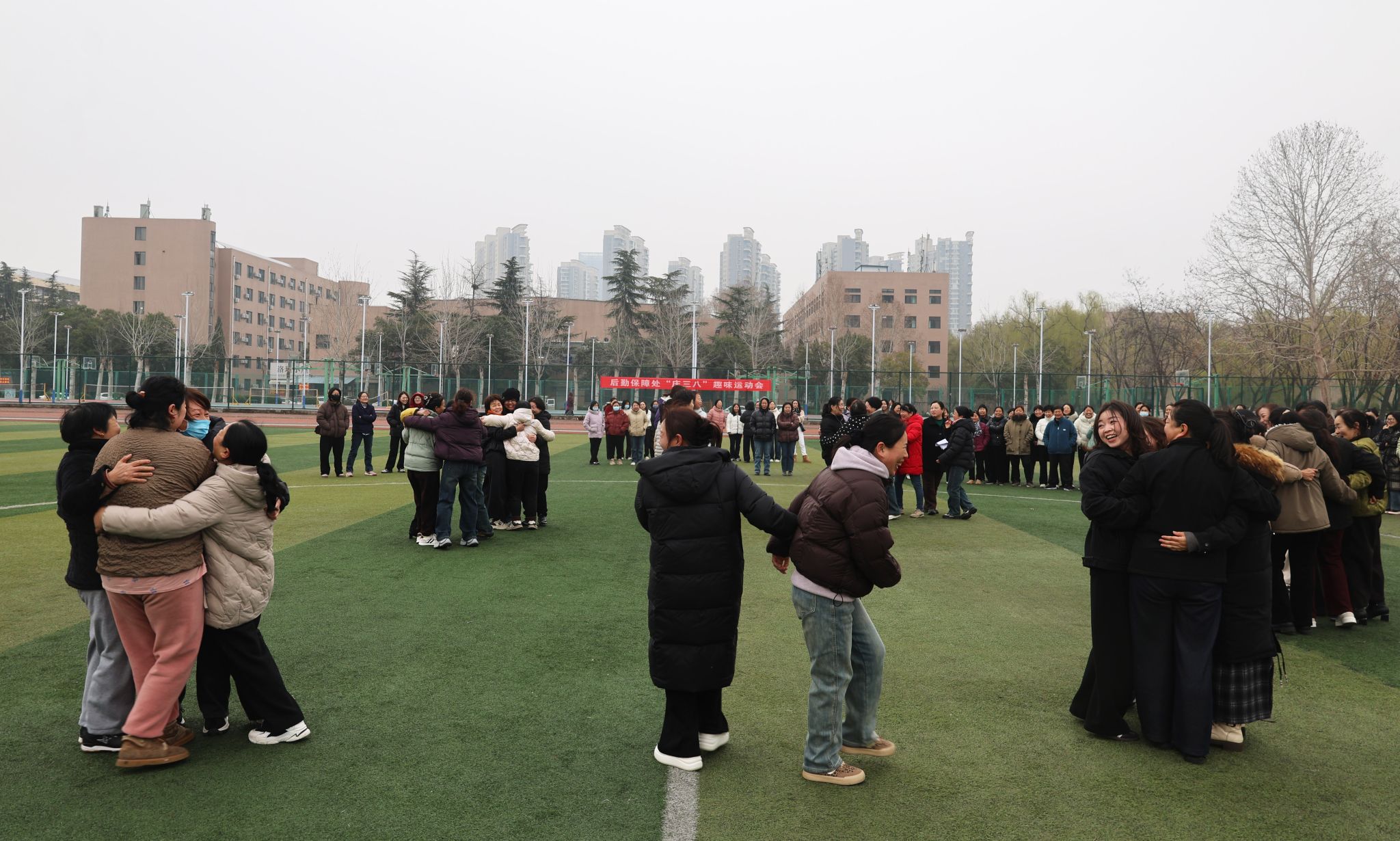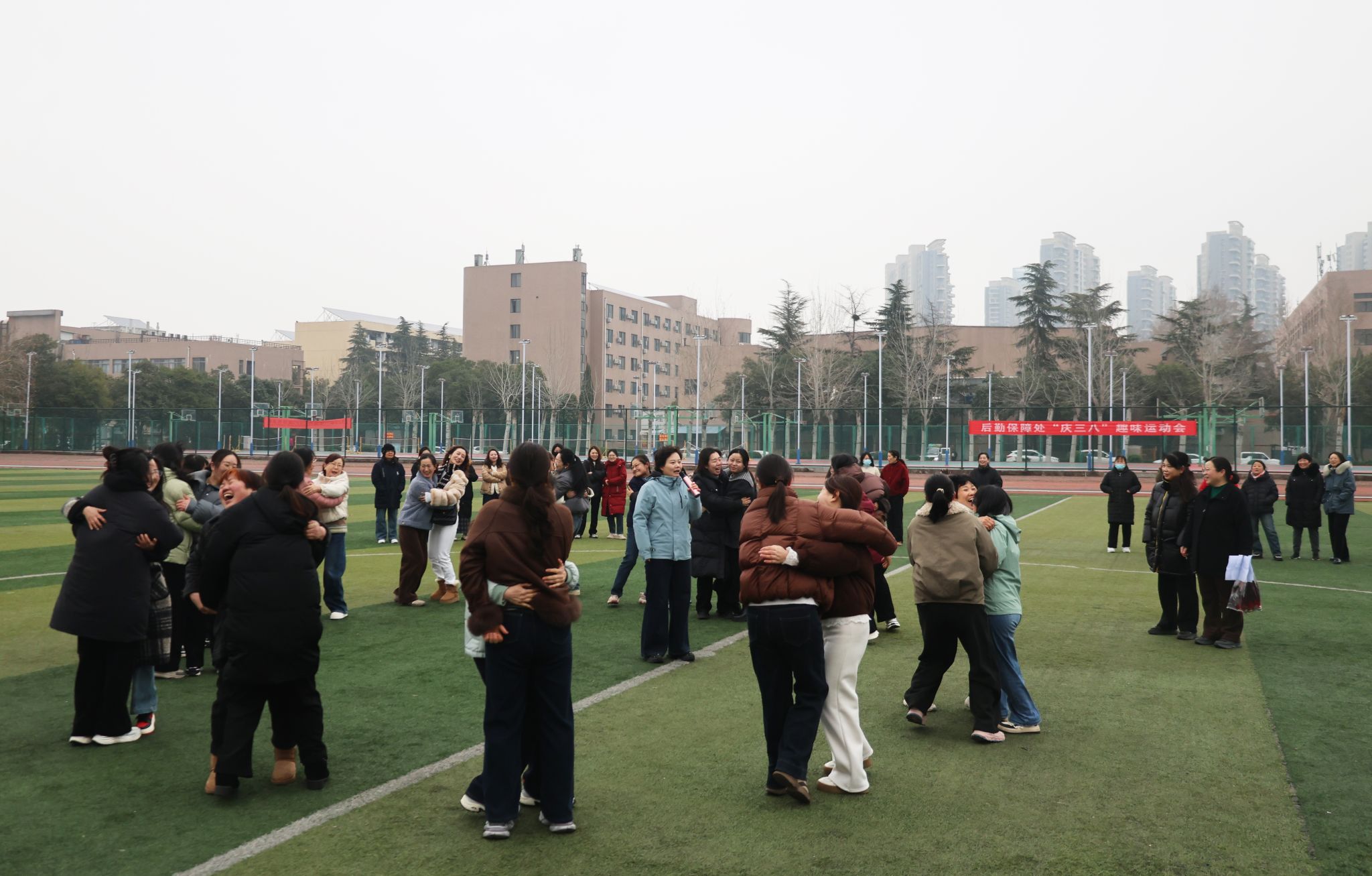 为庆祝第116个“三八”国际妇女节,丰富后勤女职工精神文化生活,凝聚巾帼奋进力量,3月6日上午,后勤保障处举办了以“巾帼绽芳华 后勤添活力”为主题的“庆三八”趣味运动会。