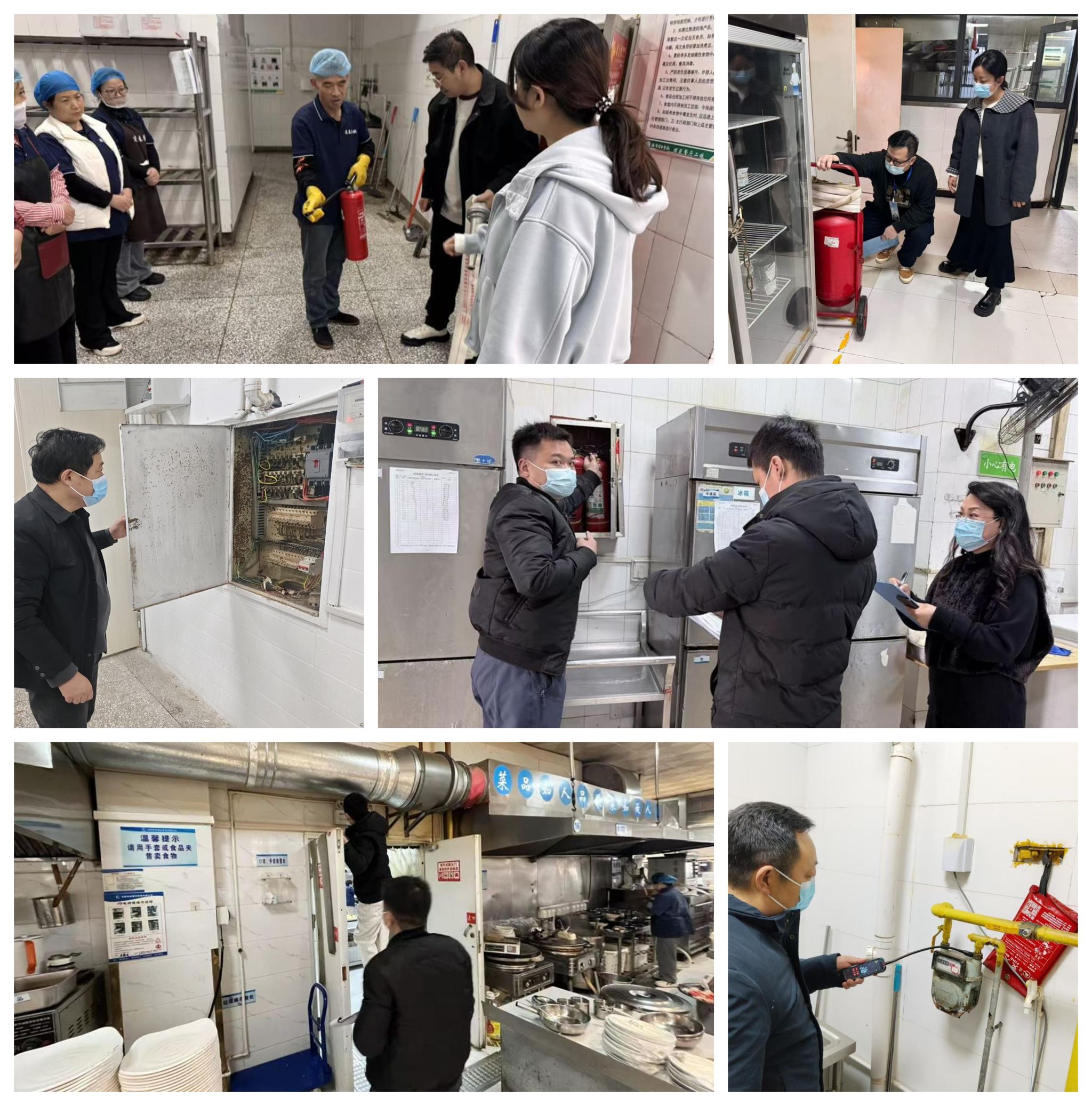 中心组织各餐厅从业人员开展消防专项培训,讲解食堂火灾防控、消防器材使用、火情处置及疏散流程等知识,并制定燃气使用专项规定,明确操作、巡检与责任要求。各餐厅每周常态化检查燃气管道、阀门、消防设施及疏散通道,及时排查整改安全隐患。