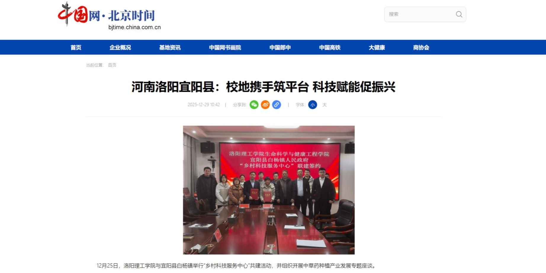中国网、河南广播电视台、顶端新闻、大象新闻、高校信息网等媒体报道我校与宜阳县白杨镇举行科技联建活动
