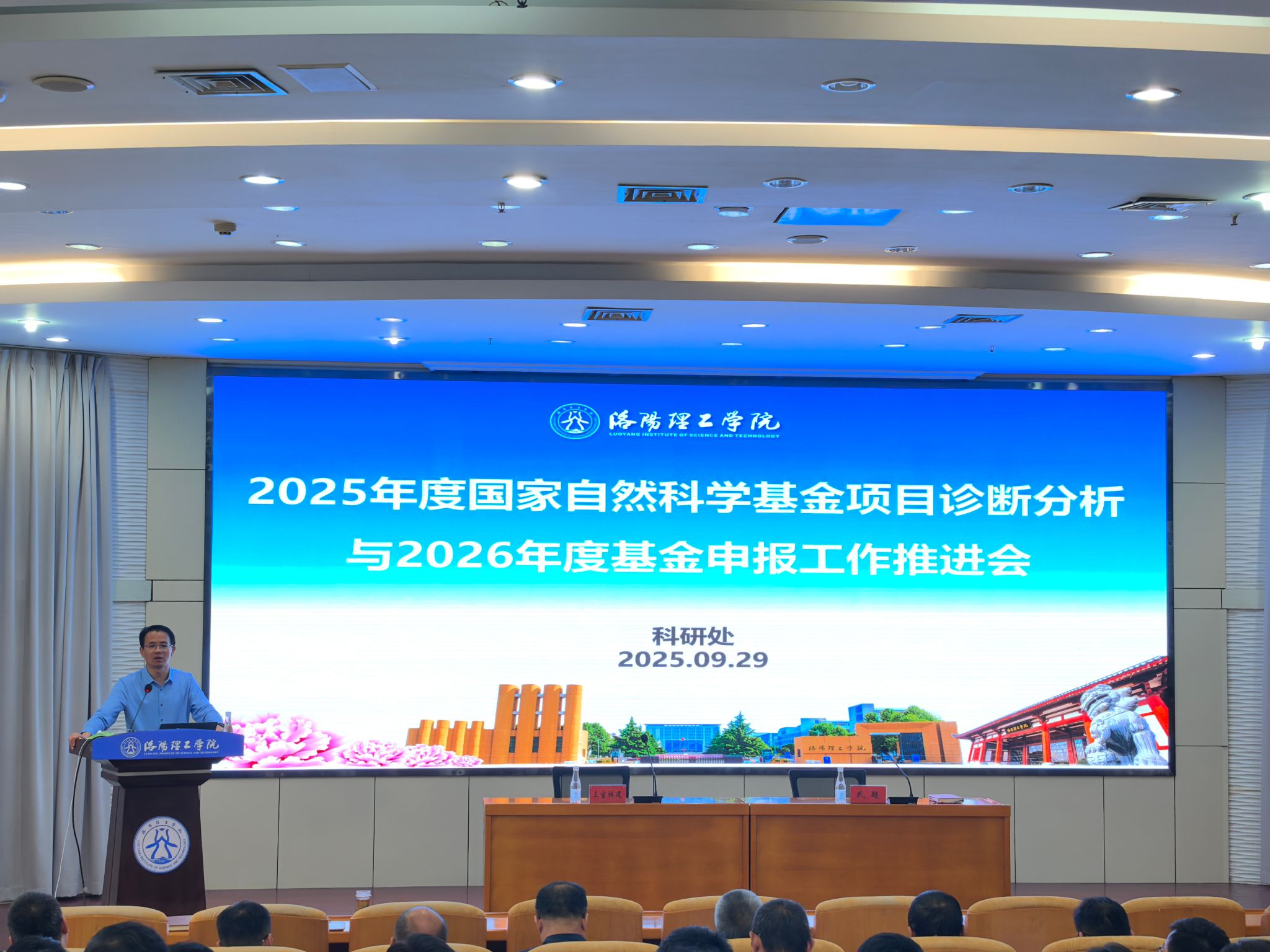 为全面总结2025度国家自然科学基金项目申报及资助情况,深入剖析存在的问题,系统再部署2026年度国家自然科学基金申报工作,9月29日下午我校在王城校区办公楼二楼报告厅召开专题工作推进会。副校长上官林建出席会议,学校理工科学院院长(主任)、主管科研工作副院长(副主任)、科研秘书及科研骨干教师参加会议。会议由科研处负责人主持。
