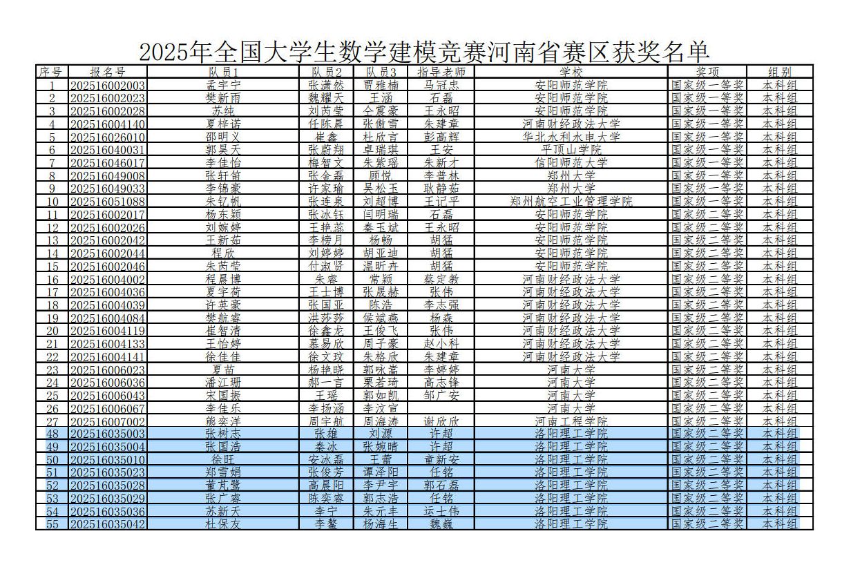 近日,2025年全国大学生数学建模竞赛获奖名单正式揭晓。我校学子再创佳绩,共获得国家级二等奖8项,成绩位居河南省参赛本科高校前列。