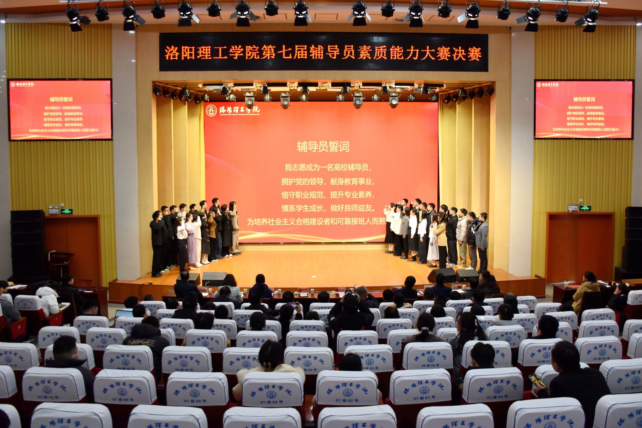 为深入学习贯彻习近平新时代中国特色社会主义思想和党的二十届四中全会精神,持续推进辅导员队伍专业化职业化发展,以高质量学工队伍建设赋能立德树人根本任务落地见效,12月25日,我校第七届辅导员素质能力大赛决赛在王城校区图书信息中心报告厅举行。党委副书记胡恩立出席大赛。相关职能部门负责人,各二级学院党委书记、副书记、全体辅导员及学生代表共600余人现场观摩。