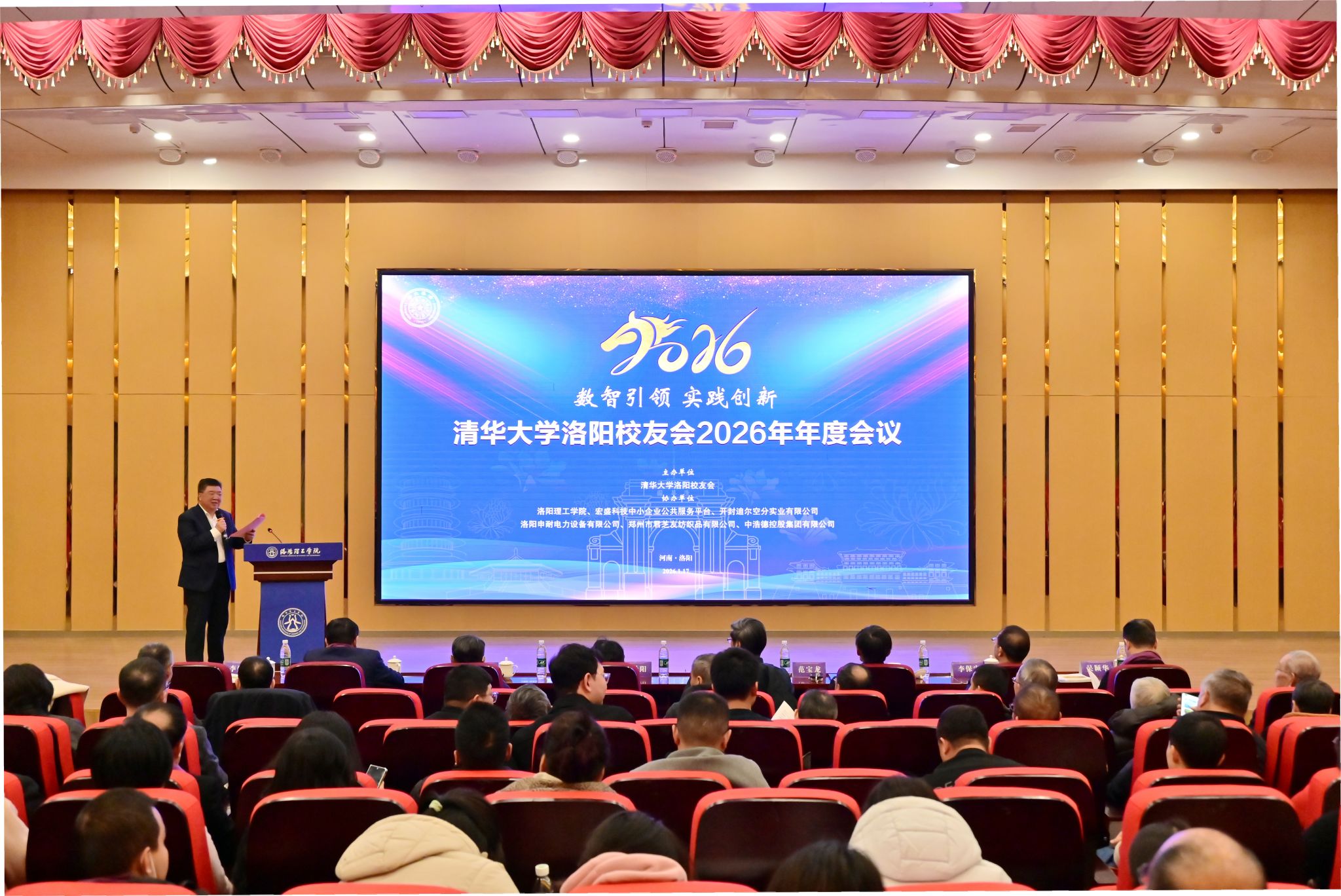 卢志文在致辞中指出,自己作为清华校友,对洛阳校友会的发展成就深感自豪、由衷赞赏。清华大学洛阳校友会始终牢记习近平总书记重要指示精神,用实际行动践行“自强不息、厚德载物”的校训,建立了良好的校友交流平台,开创了区域合作新局面,拓宽了创新发展新路径,设立了教育、材料、信息、先进制造等六大专委会,构建“校友会+专委会”工作体系,适应了校友们日益增长的需求和期待,持续推进校友工作高质量发展,为服务广大校友、为洛阳经济社会发展作出了应有贡献。洛阳理工学院与清华大学洛阳校友会有着良好的合作基础,面向未来,期待双方深度融合:一是共建人工智能创新平台、二是共筑人才培养高地、三是共建资源共享平台,推动校友资源、高校资源与地方产业资源高效联动,形成“校会协同、产学共赢”的良好生态。