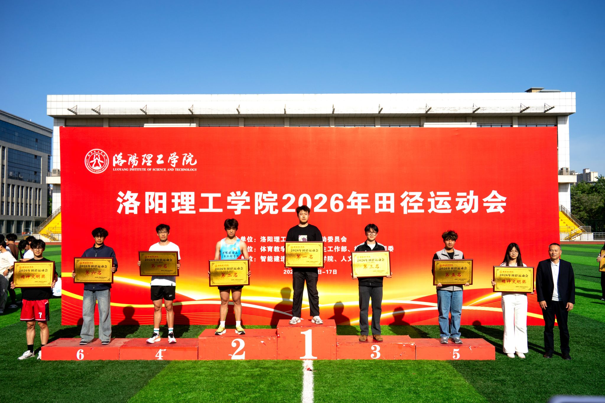春满校园燃激情,踔厉奋发启新程。4月17日下午,洛阳理工学院2026年田径运动会在圆满完成各类比赛项目后顺利闭幕。党委副书记、工会主席曾涛,副校长李传锋、石念峰出席闭幕式,学校各职能部门、教学院(部)负责人及师生代表参加闭幕式。闭幕式由石念峰主持。