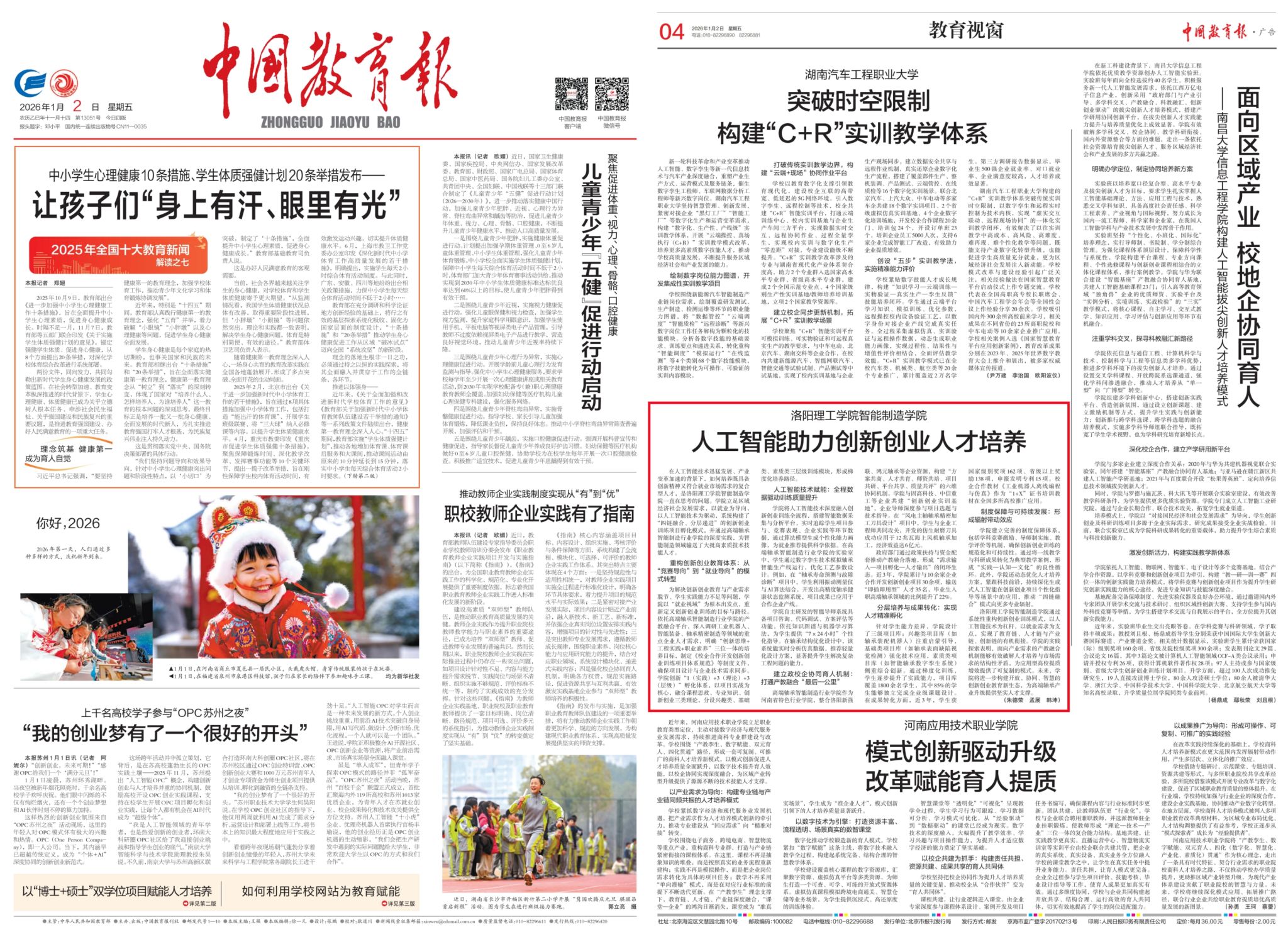 《中国教育报》,2026年1月2日第04版“教育视窗”,《洛阳理工学院智能制造学院 人工智能助力创新创业人才培养》