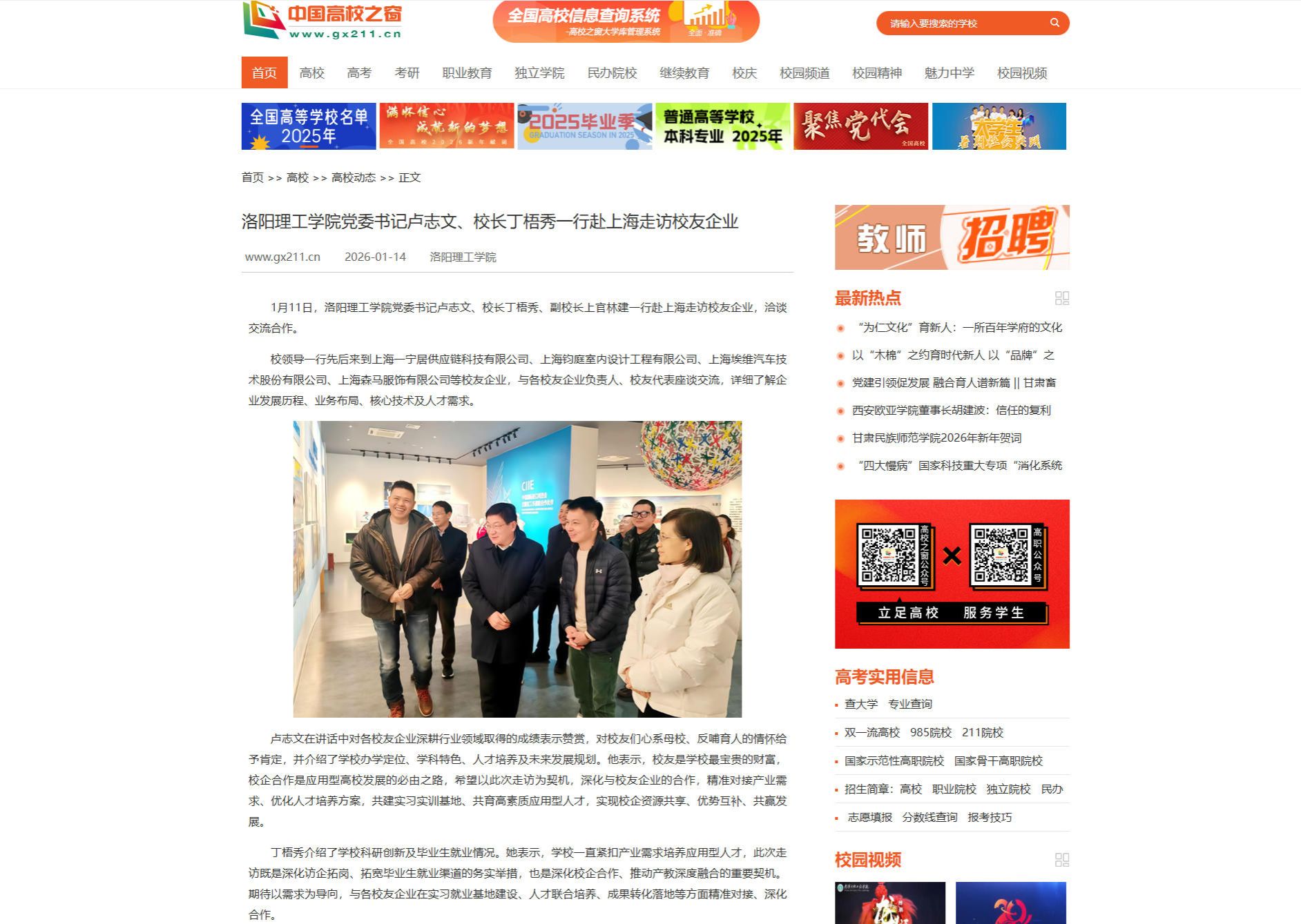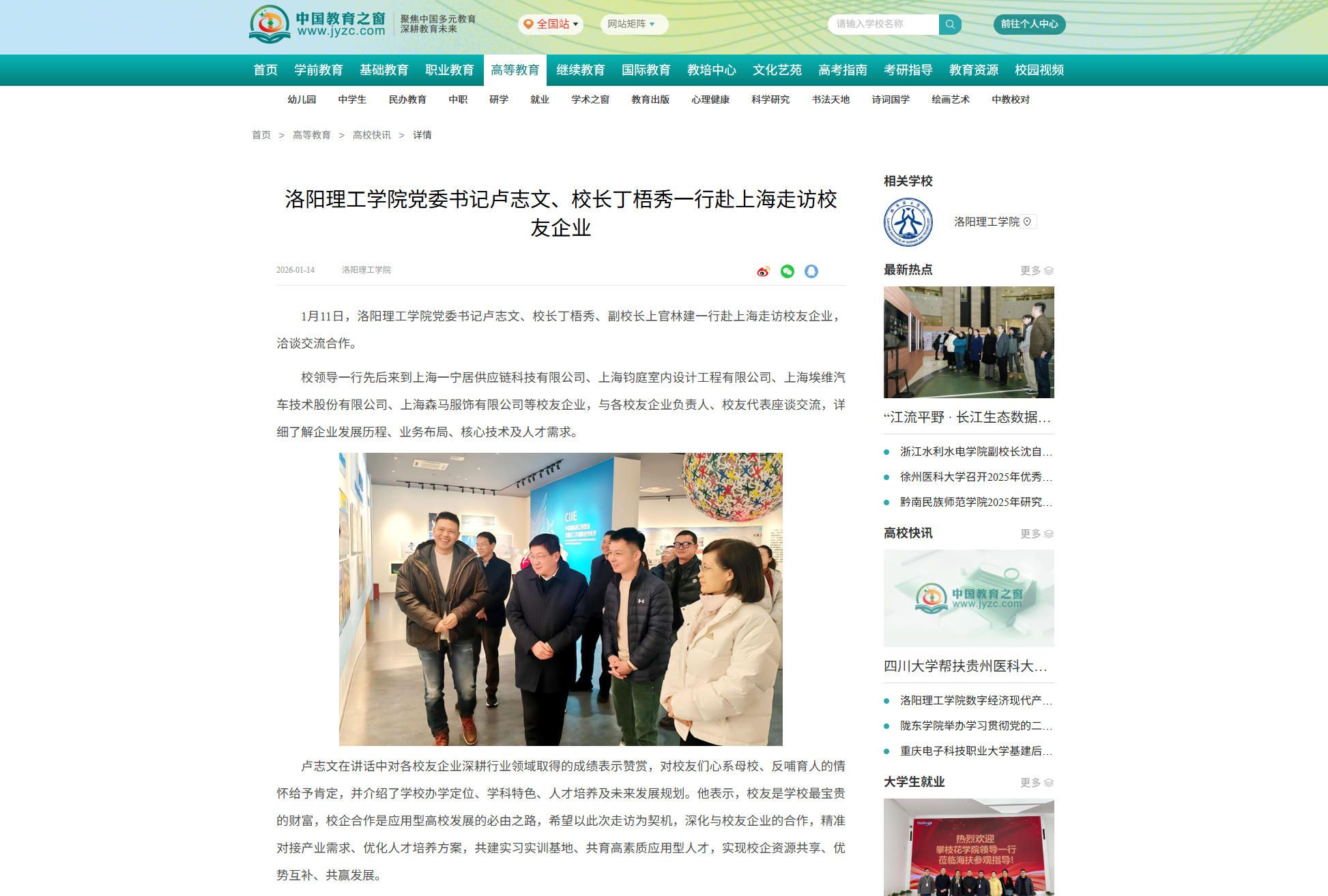 2.中国高校之窗,2026年1月14日,《洛阳理工学院党委书记卢志文、校长丁梧秀一行赴上海走访校友企业》