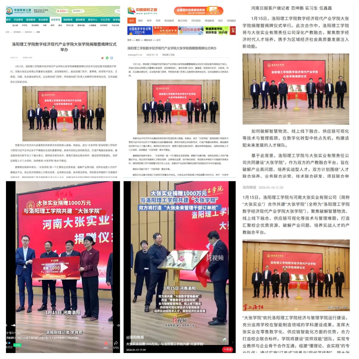 5.洛阳晚报公众号,2026年1月16日,《捐赠1000万元!洛阳理工学院与大张实业合作共建“大张学院”》