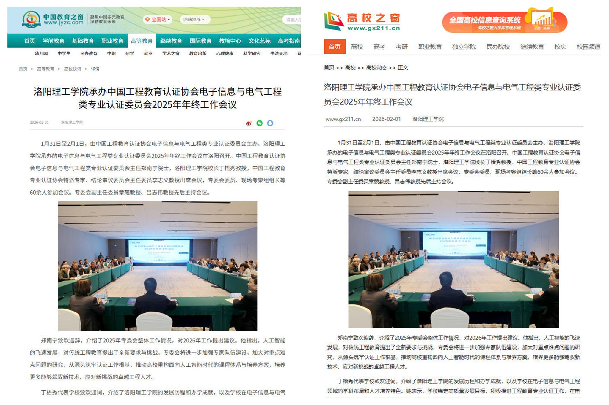 2.高校之窗,2026年2月1日,《洛阳理工学院承办中国工程教育认证协会电子信息与电气工程类专业认证委员会2025年年终工作会议》