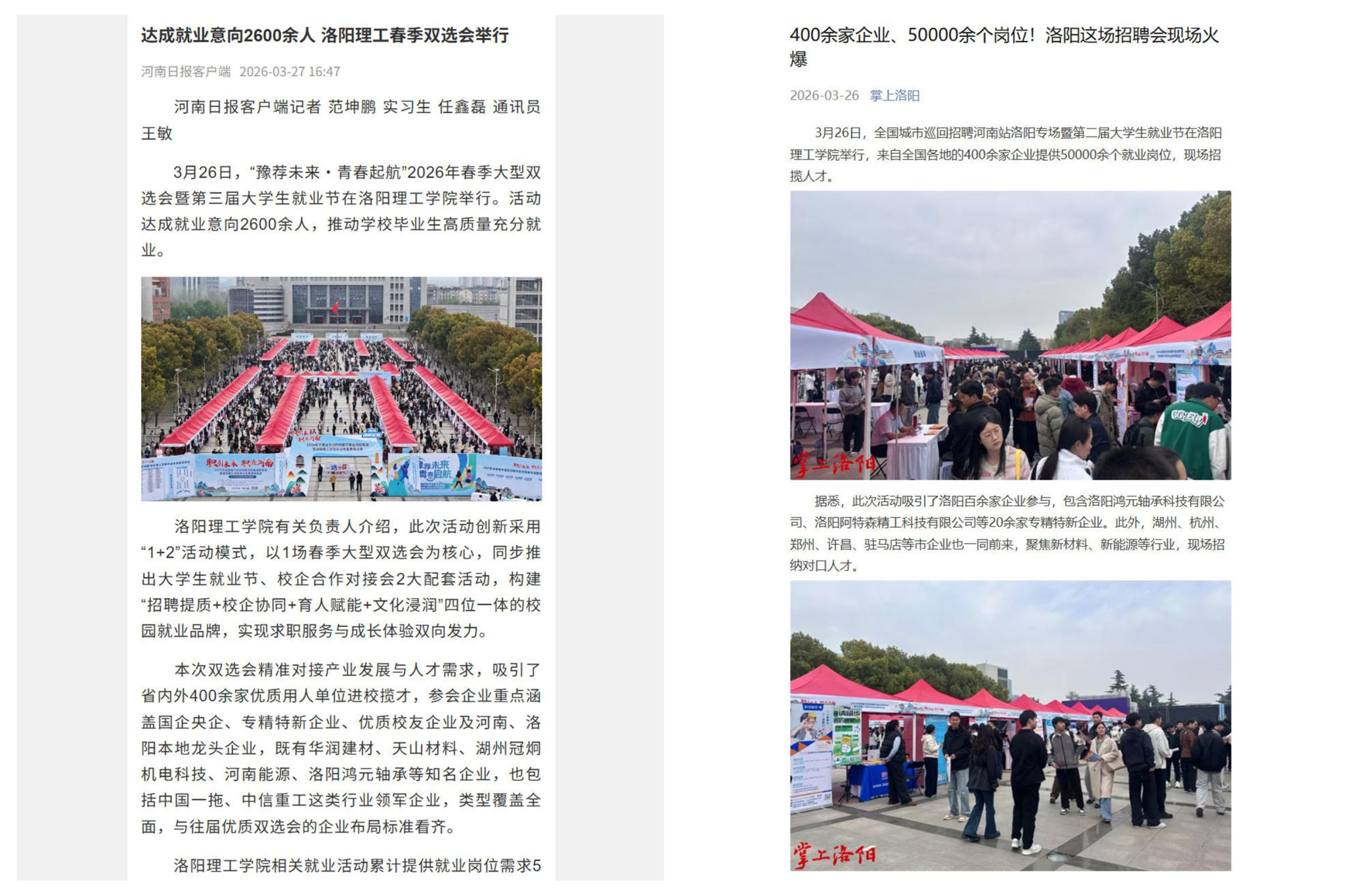 5.掌上洛阳,2026年3月26日,《400余家企业、50000余个岗位!洛阳这场招聘会现场火爆》