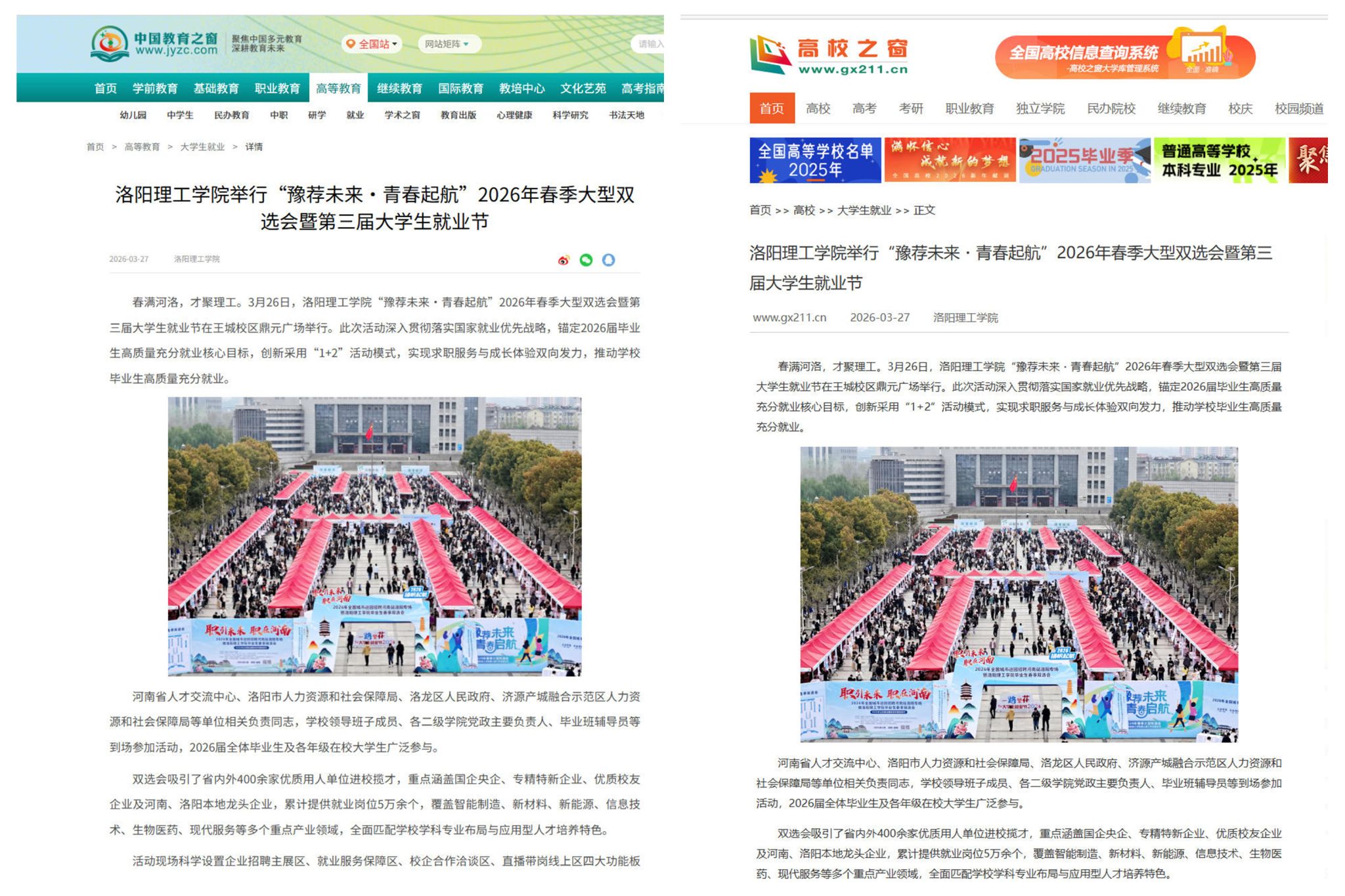 4.高校之窗,2026年3月27日,《洛阳理工学院举行“豫荐未来・青春起航”2026年春季大型双选会暨第三届大学生就业节》