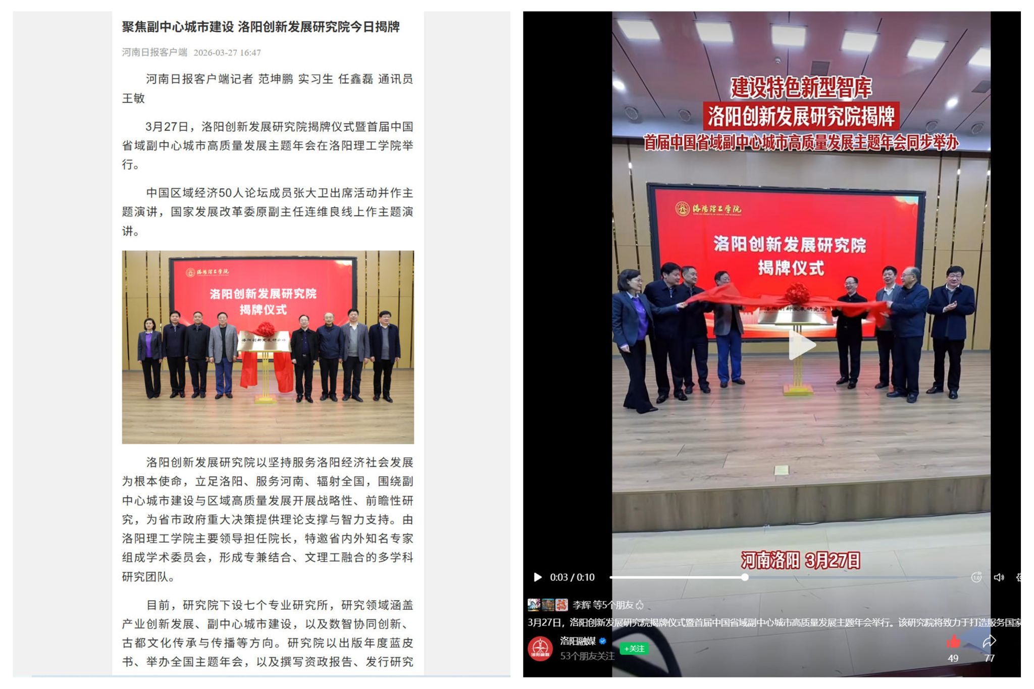2.洛阳电视台《新闻联播》,2026年3月27日,《洛阳创新发展研究院揭牌》