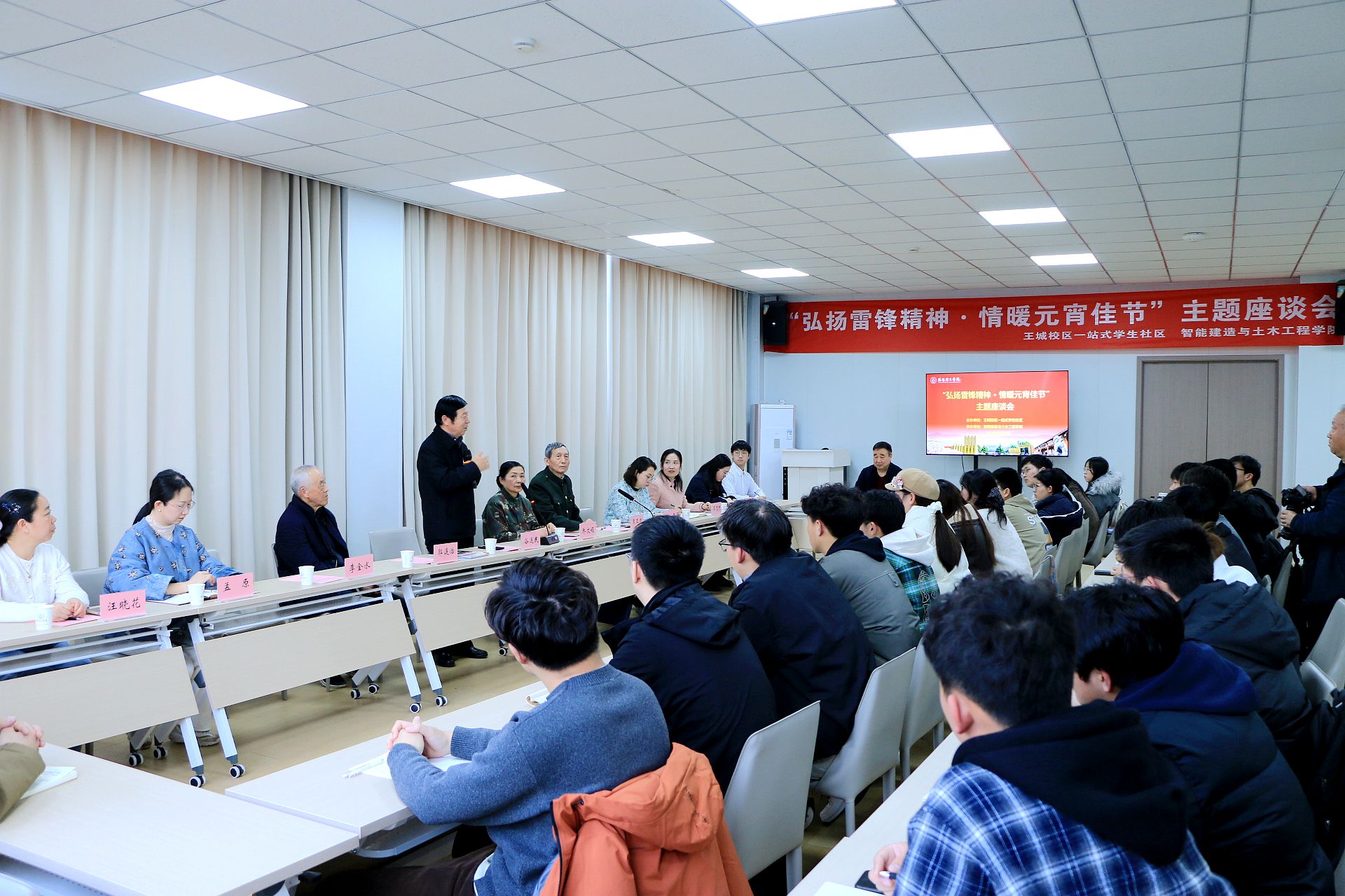 3月3日元宵佳节,我校王城校区一站式学生社区联合智能建造与土木工程学院、离退休工作处,共同举办“弘扬雷锋精神·情暖元宵佳节”主题座谈会。洛阳市老干部督导团团长谷连民,全国道德模范乔文娟,我校关工委副主任郭连治、爱国主义报告团团长李亚非、爱国主义报告团成员李金水,王城校区一站式学生社区负责人及师生代表齐聚一堂,共话精神传承,共叙佳节温情。