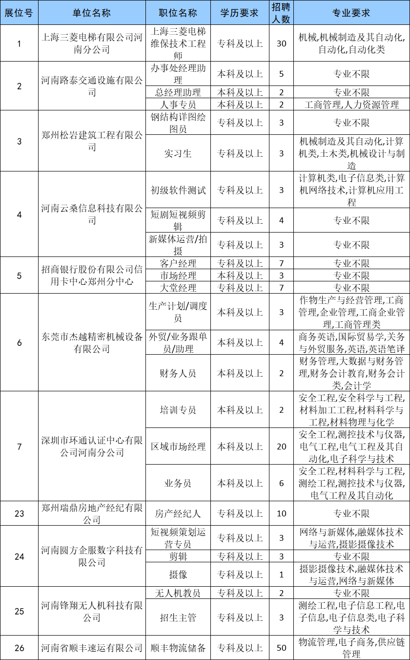 另有上海三菱电梯河南分公司、河南路泰交通设施等企业加盟,国企、民企任选,适配不同求职需求。