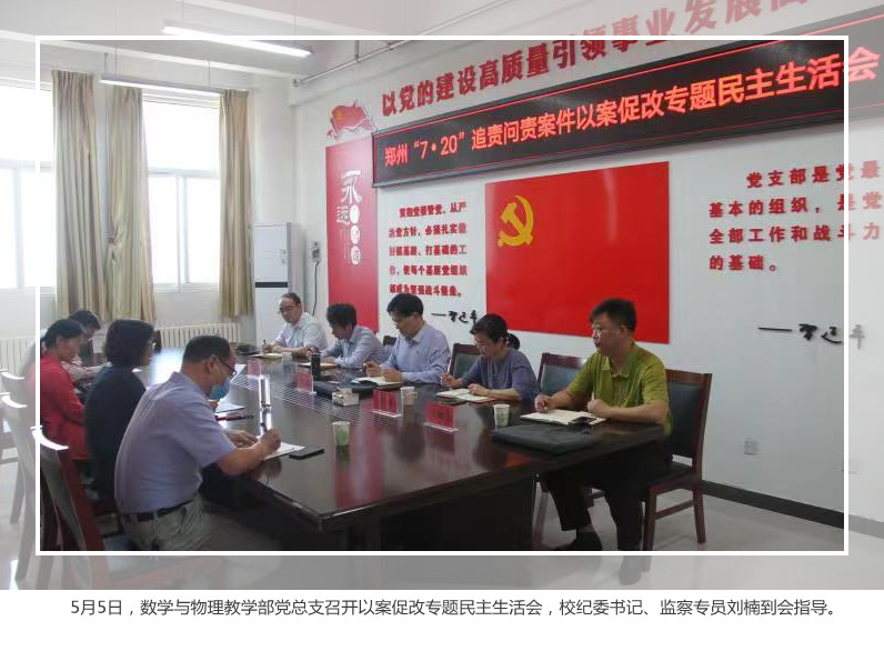 为持续推进我校开展郑州“7·20”特大暴雨灾害追责问责案件以案促改工作,根据校党委组织部《关于召开处级党员领导干部以案促改专题民主生活会的通知》(组发〔2022〕9号),我校各二级党组织陆续召开专题民主生活会,对照以案促改工作方案中的“六查”查摆问题和不足,深刻剖析原因,明确整改措施。校领导深入分管和联系的单位进行现场指导。