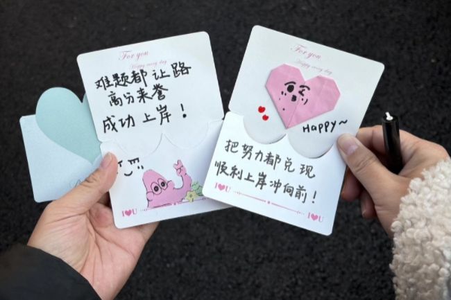一张张满载善意的祝福卡,化作寒冬里的点点星火,跨越距离传递着陌生却滚烫的温暖。这份纯粹的关怀,将陪伴备考学子走完最后的征途,为他们注入勇往直前的信心与力量。愿学子们带着这份暖意与光亮,在考场上落笔生花、从容应战,终将跨越山海,抵达理想的彼岸。经济与管理学院静候每一位追梦人“上岸”的捷报,见证他们在青春赛道上绽放耀眼光芒!