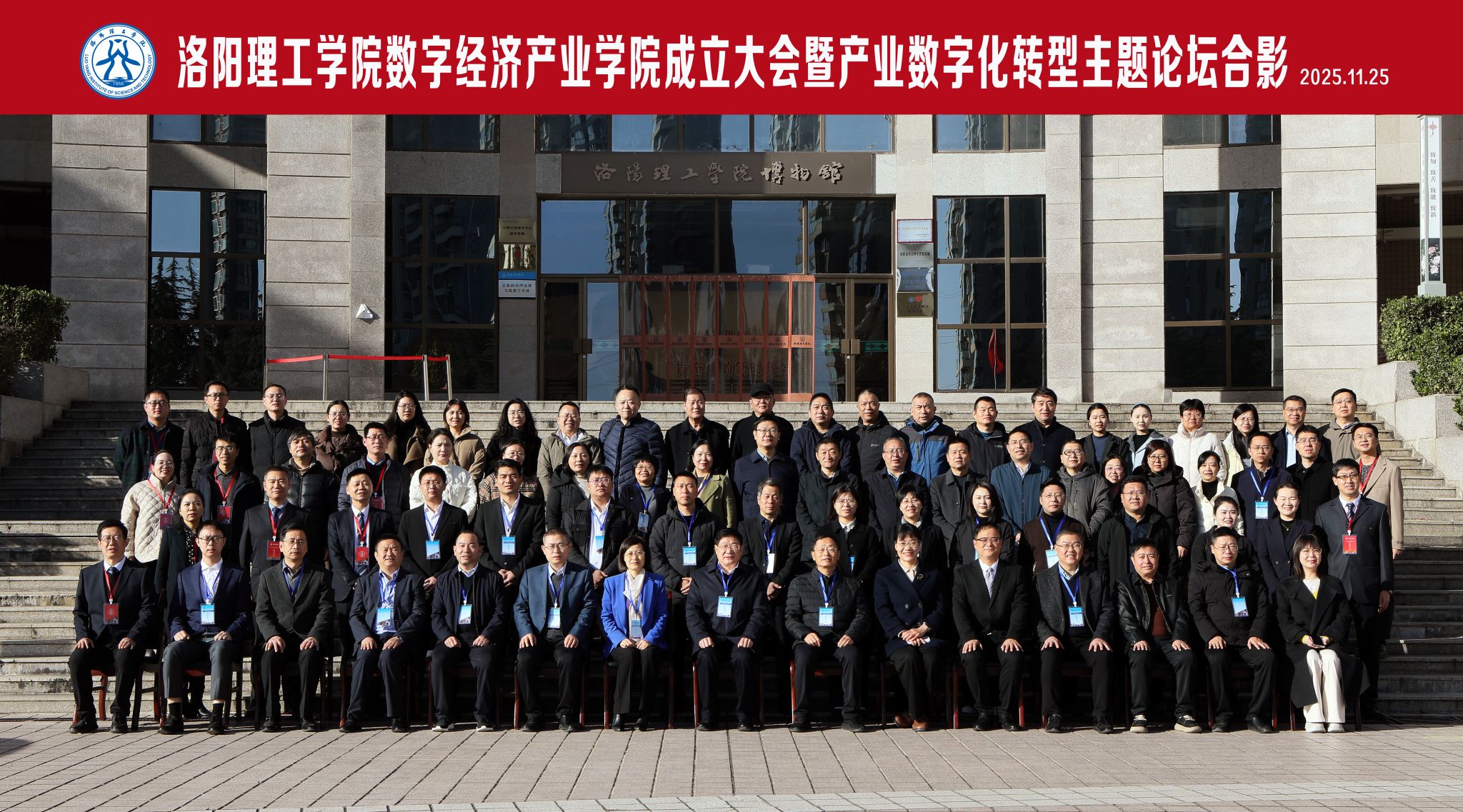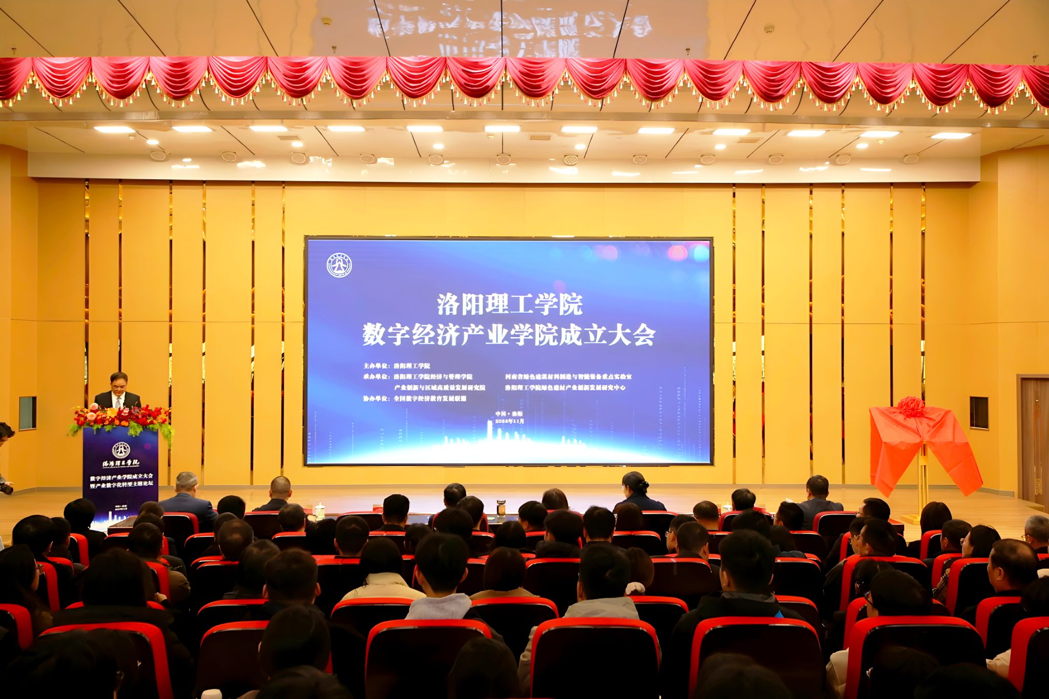 11月25日,洛阳理工学院数字经济产业学院成立大会暨产业数字化转型主题论坛在开元校区图书馆报告厅举行。此次活动以“数智赋能驱动产业高质量发展 产教融合推进教科人才一体化”为主题。河南大张实业有限公司董事长张国贤,万基控股集团有限公司副总经理、总经济师姬延召,浙江思睿智训科技有限公司总裁汤卫,河南丰尔彻新材料科技有限公司总经理范军均,河南邦邦教育科技有限公司董事长郭民政,我校领导卢志文、丁梧秀、冯超、李传锋、石念峰等出席活动。洛阳理工学院数字经济产业学院成立大会由副校长石念峰主持。