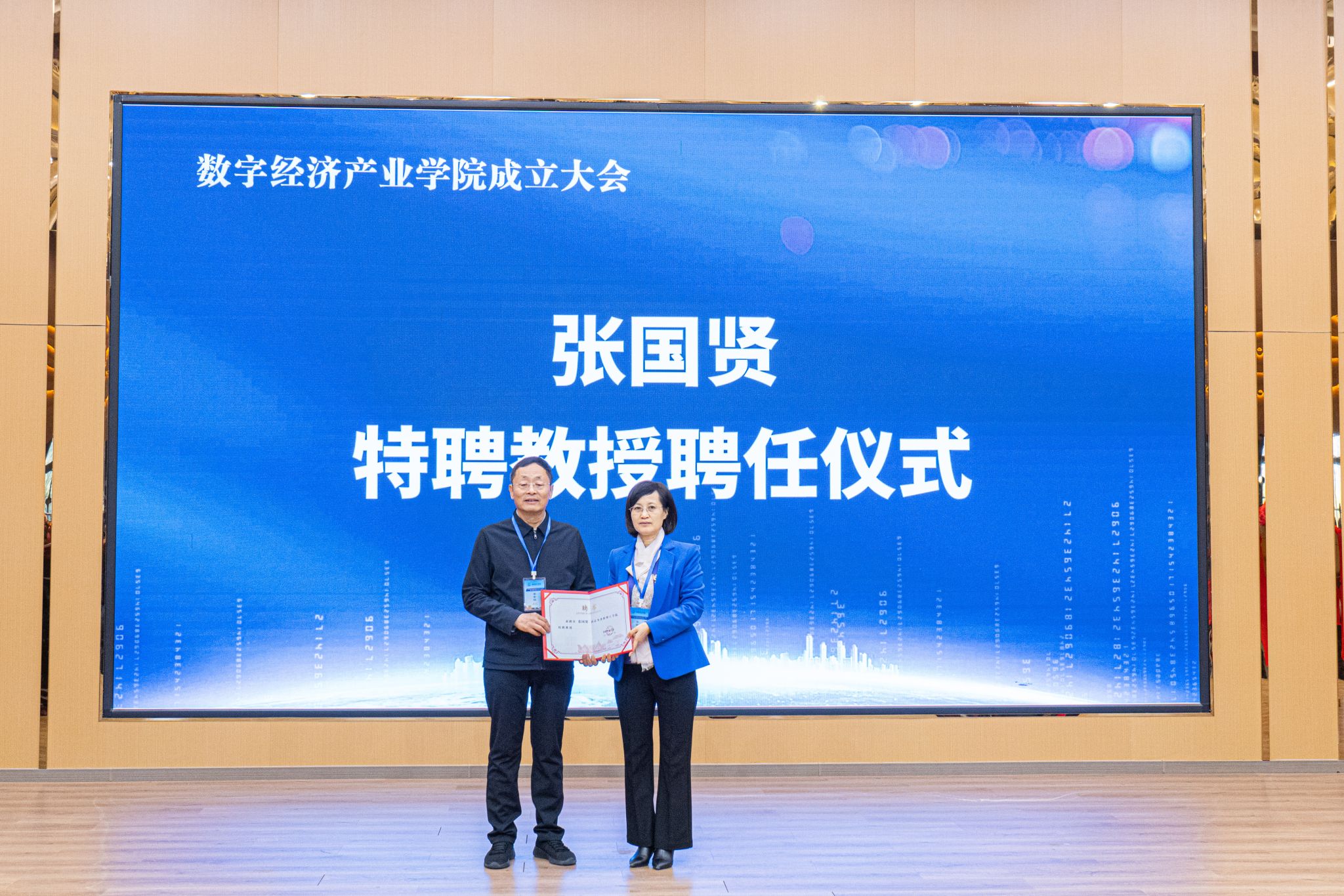 副校长李传锋主持产业数字化转型主题论坛环节。张国贤、姬延召、汤卫、副校长冯超分别以《数智驱动 重塑零售》《数字赋能 智领未来——以数字化转型驱动企业高质量发展》《AI赋能下数字经济特色人才培养体系的构建与创新实践》《工科赋能 产教双融 培养经管数智化人才》为题作主旨报告。