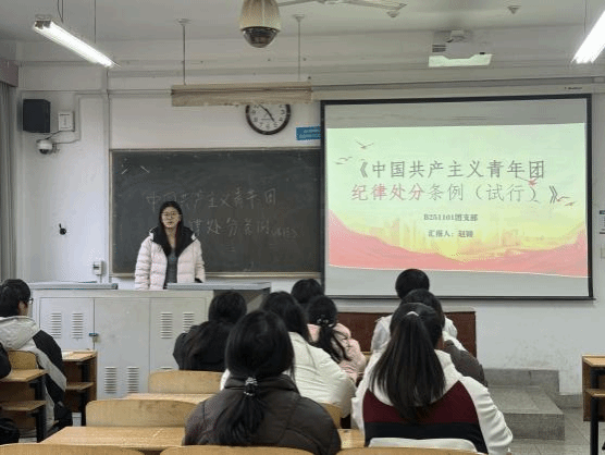 为深入推进团员纪律教育,引导青年团员知敬畏、存戒惧、守底线,近期,工商管理专业各团支部围绕《中国共产主义青年团纪律处分条例(试行)》开展了专题学习活动。