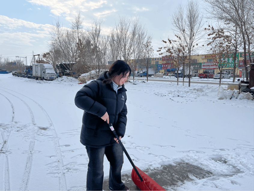 在回到家乡之后里,马新悦同学参与了社区组织的积雪清扫志愿服务,她激动地说,这不仅是一次体力劳动,更是一次深刻的返家乡实践,让她对家乡的责任与担当有了全新的理解。