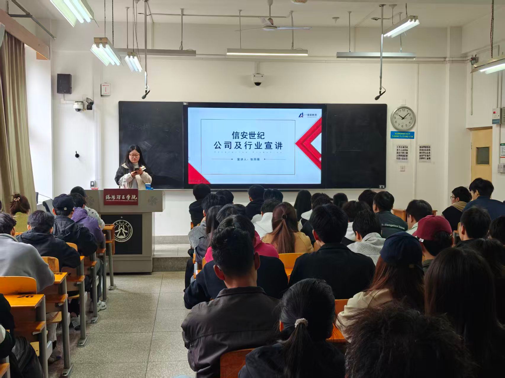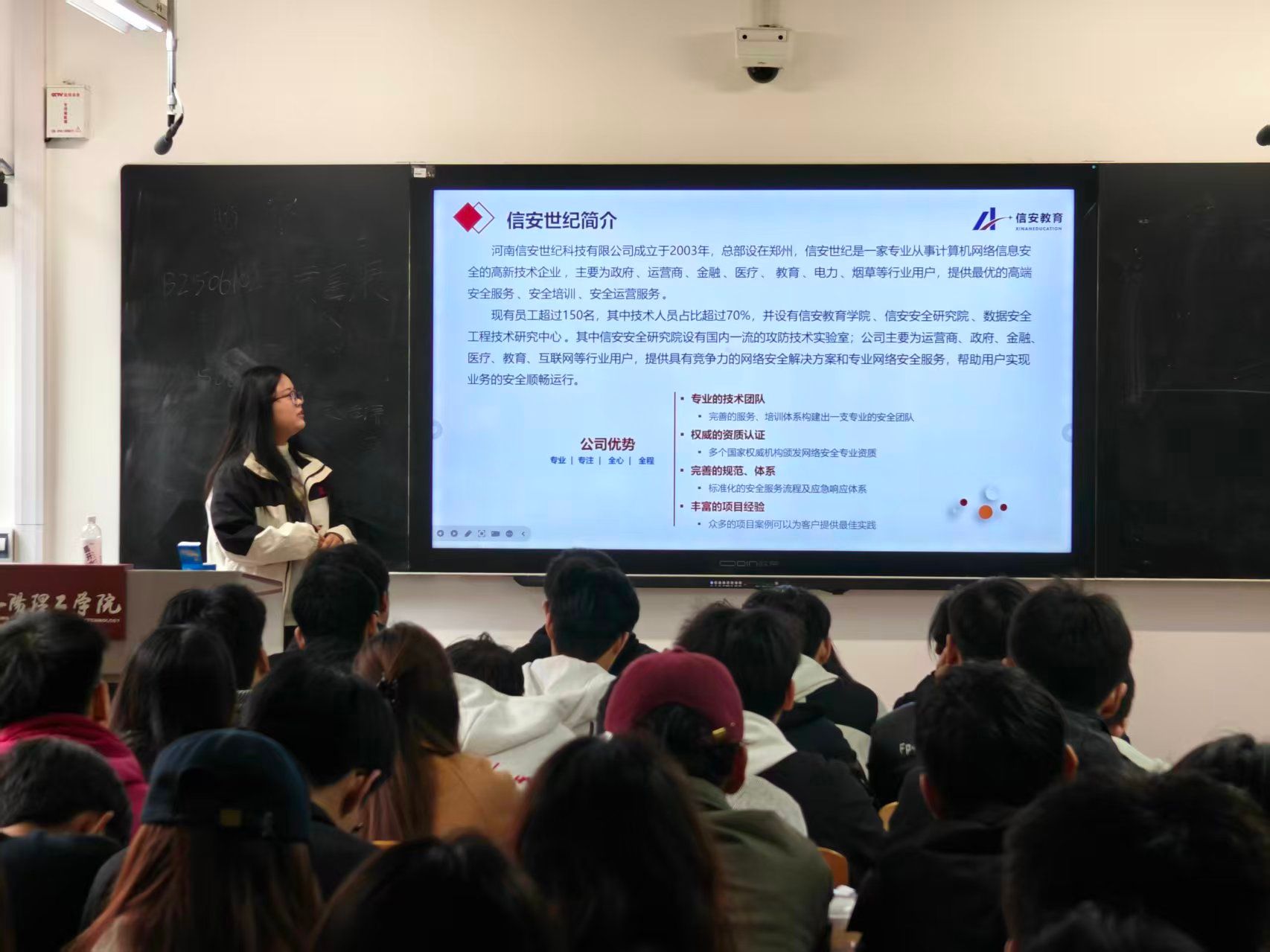 为深化校企合作,拓宽毕业生就业渠道,助力学生精准对接行业需求,2025年10月18日,河南信安世纪科技有限公司应邀走进我院,在教学楼XC105教室面向2026届毕业生举办专场校园招聘宣讲会。