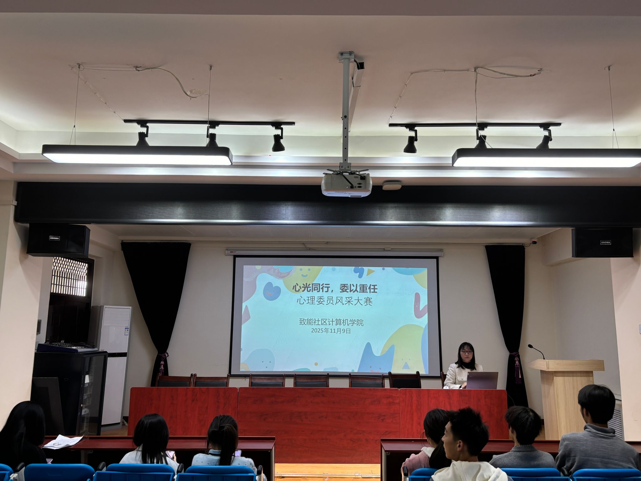 为进一步提升致能社区计算机学院心理委员专业素养与履职能力,搭建朋辈心理服务者交流展示的平台,2025年11月10日,致能社区计算机学院在实验A楼212举办“心光同行 委以重任”心理委员风采大赛。来自社区与学院的心理委员们同台竞技,以专业的知识、真挚的情感和务实的行动,诠释着“心灵守护者”的责任与担当。