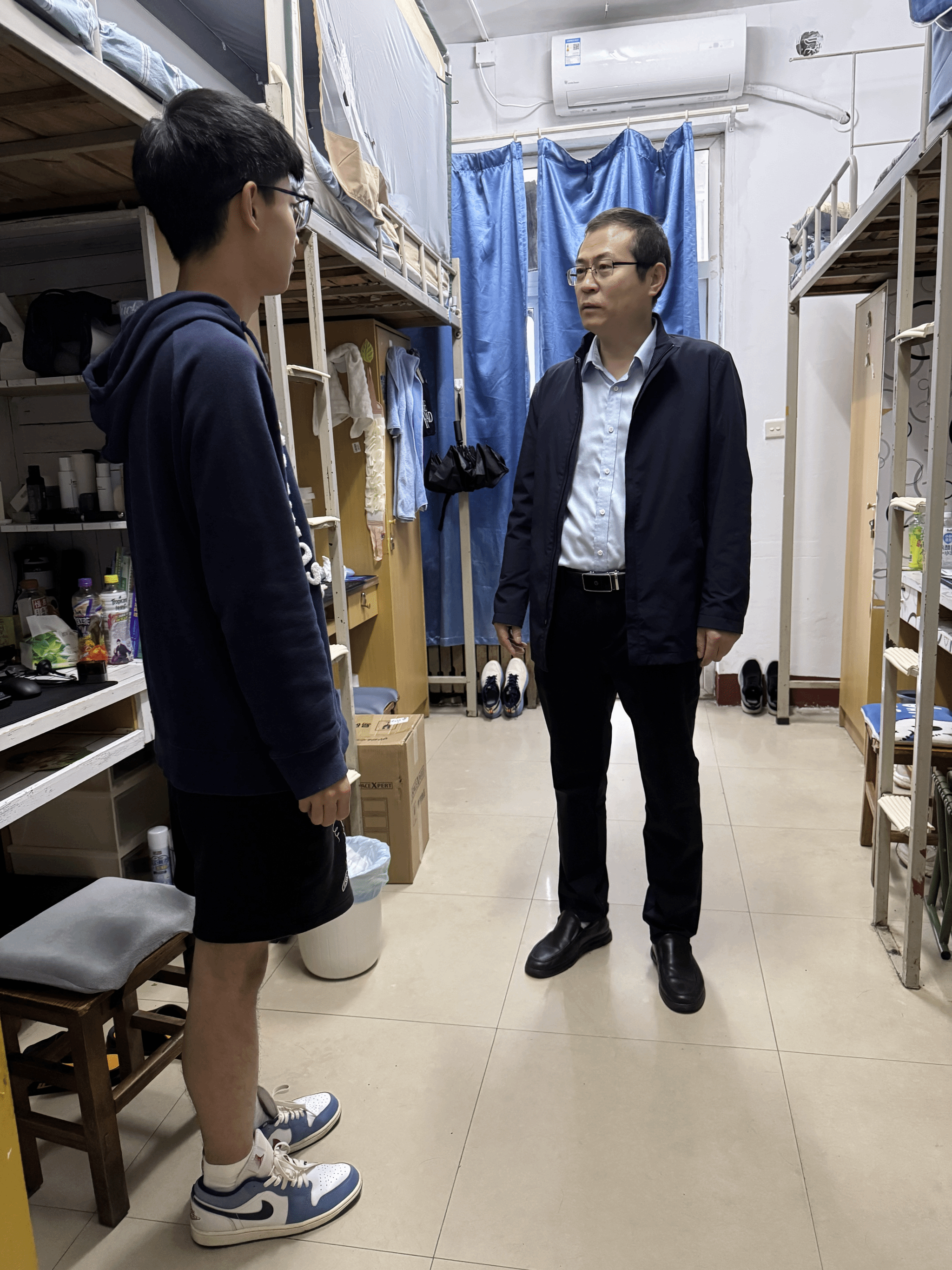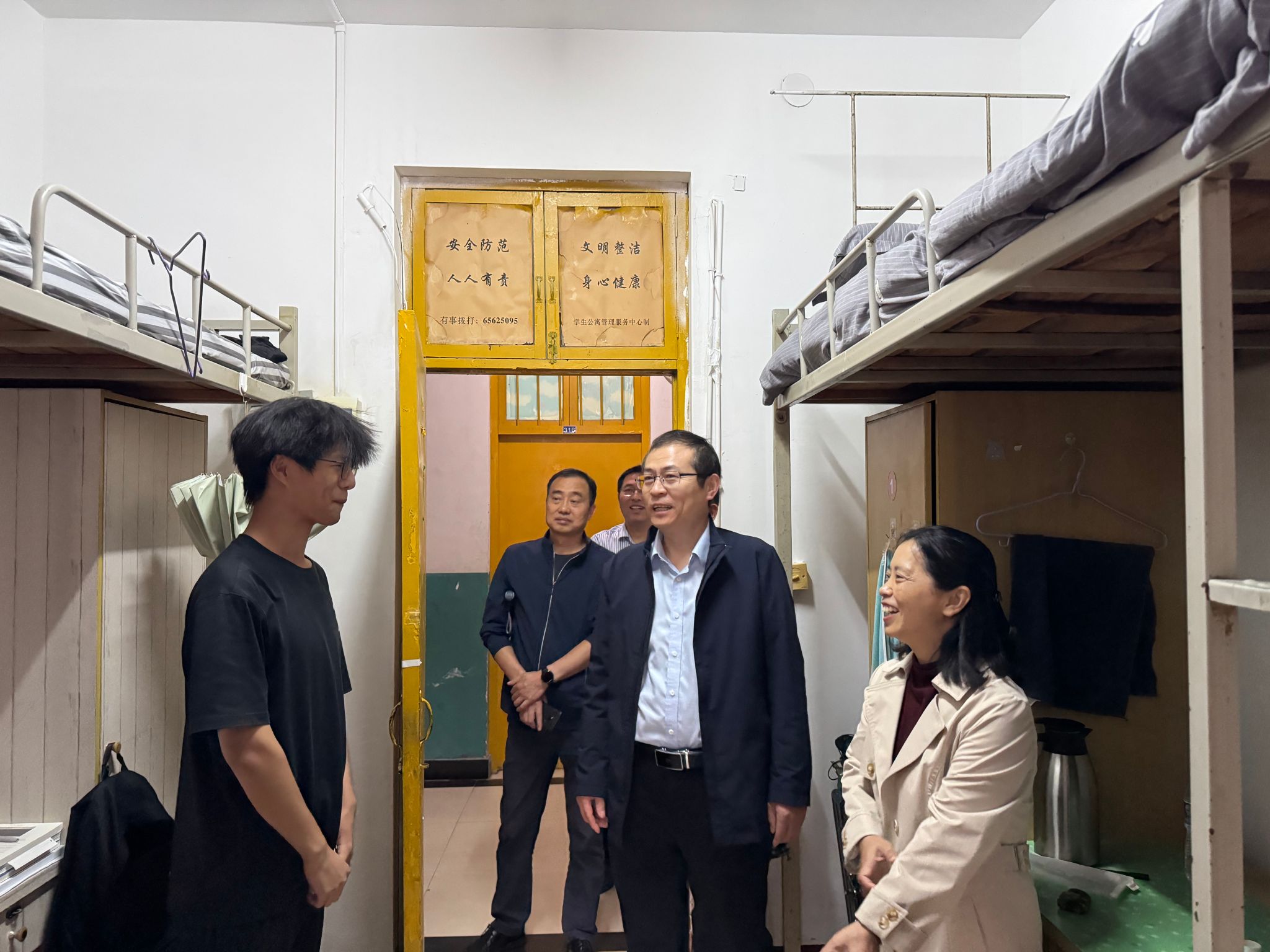 李传锋副校长还担任着计算机学院班主任。在致能社区璞三学生公寓,他走进所带班级的学生宿舍,与留校学生亲切交谈,了解学生的生活学习等情况,并送上节日祝福。他鼓励同学们要合理安排假期时间,保持积极乐观心态,将个人成长与学院发展、国家建设相结合,在实践中践行责任担当。
