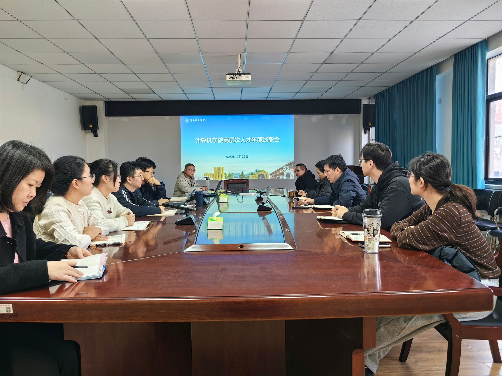 为全面总结2025年度教学科研工作成效,精准规划2026年发展方向,进一步加强高层次人才队伍建设,2025年12月29日,计算机学院召开2025年度高层次人才述职会。党委书记刘爱萍、院长王国强出席会议并讲话,学院全体博士教师参会,。