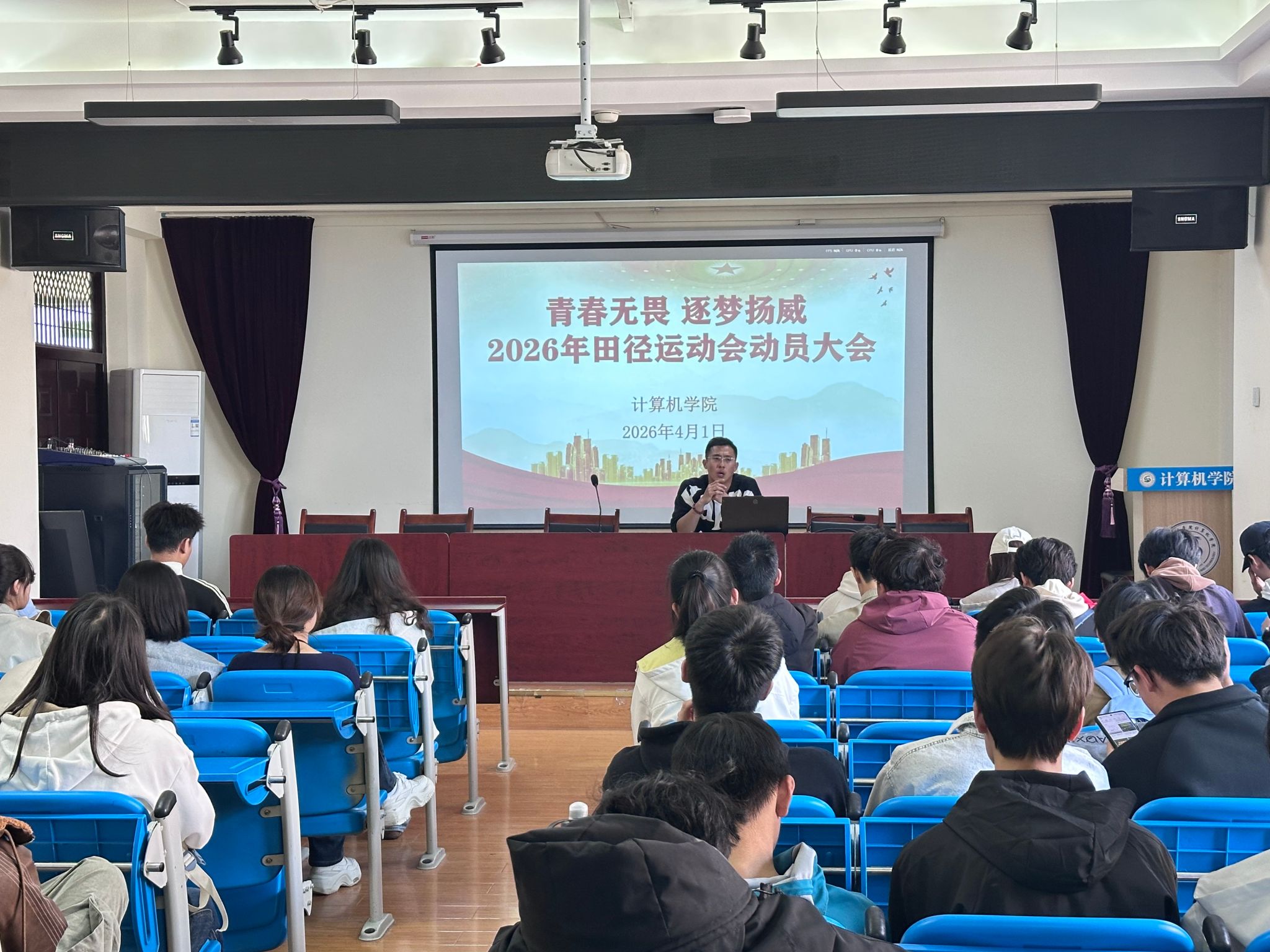 4月1日,我院在开元校区实验楼A212召开洛阳理工学院2026年春季田径运动会(学生)动员大会。学院团委副书记崔龙浩、学生会成员以及参赛运动员参加大会。
