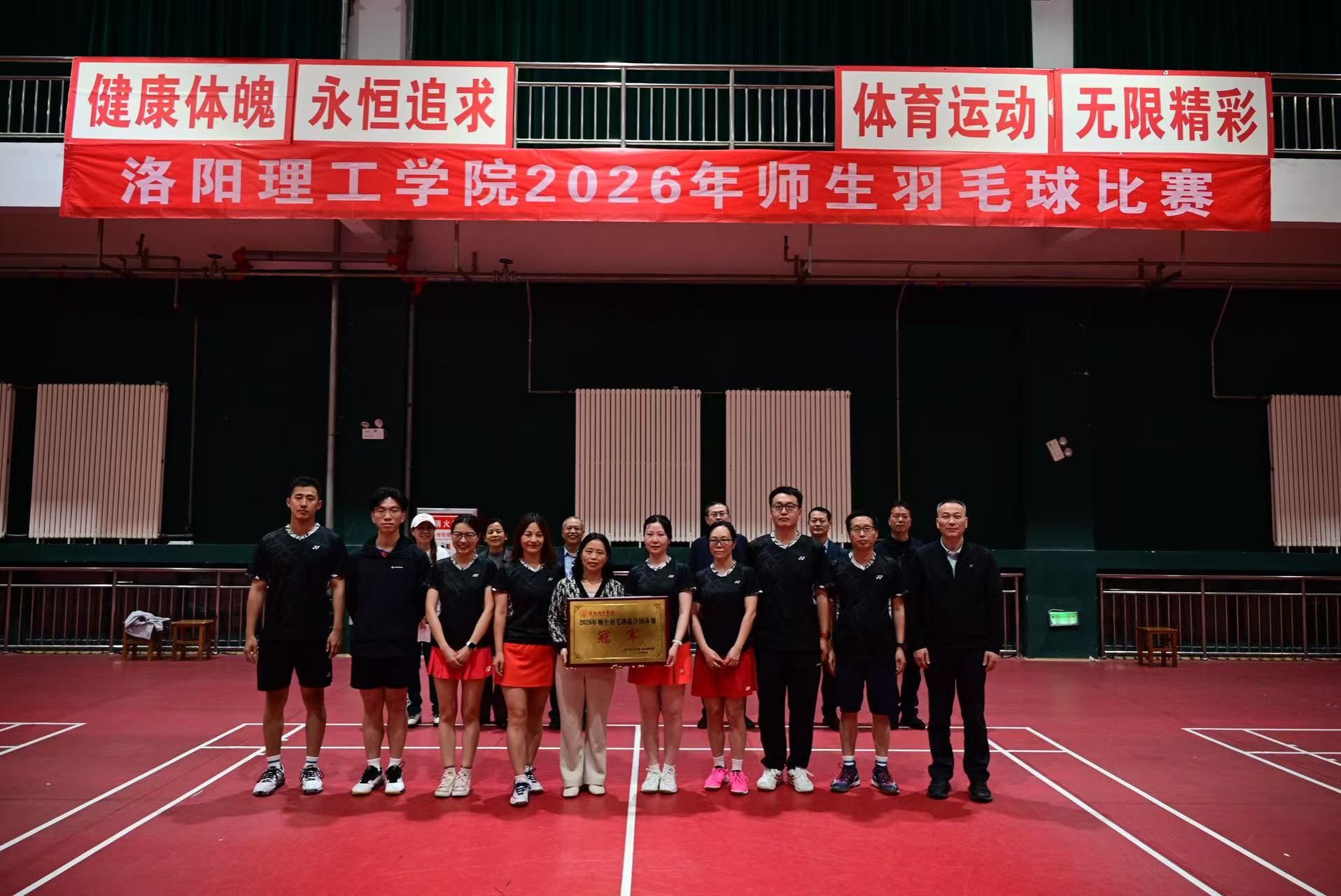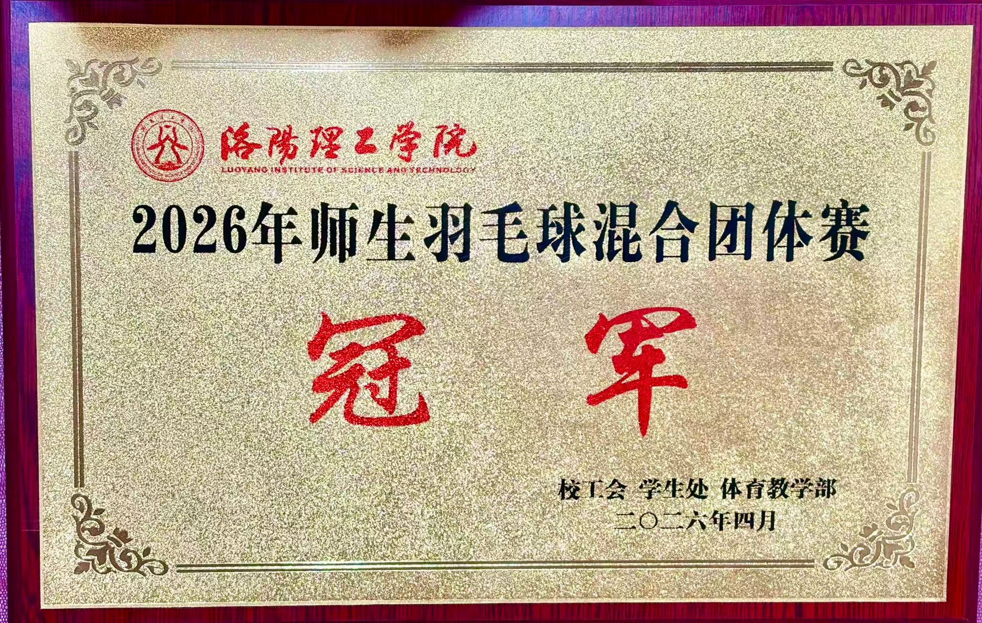 近日,洛阳理工学院2026年度师生羽毛球混合团体赛圆满收官。计算机学院代表队凭借顽强拼搏的竞技精神、高度默契的团队协作,一路披荆斩棘、力克群雄,最终斩获团体冠军,为学院赢得荣誉。